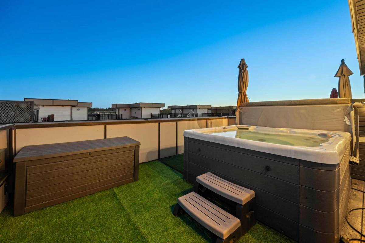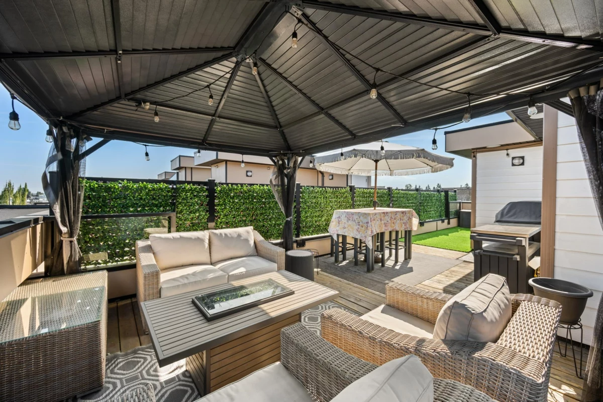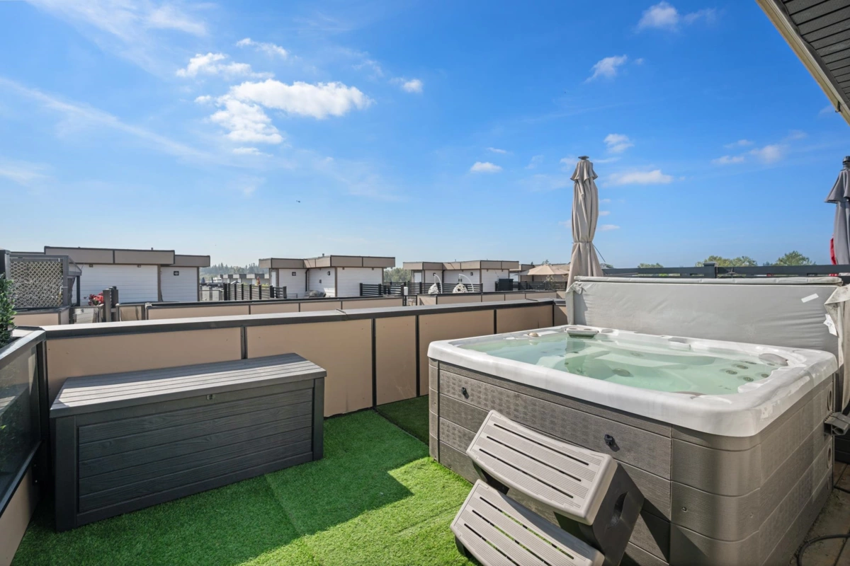 Welcome to this beautifully designed 3 bed, 3 bath townhome offering a spacious open floorplan. Enjoy a stunning rooftop terrace—perfect for entertaining, relaxing, or taking in the sunset views. Thoughtfully designed with ample storage and a potential flex space for additional living. Located in a central Langley neighbourhood just steps from the future SkyTrain, shops, restaurants, transit and all amenities. This home is complete with air conditioning, a gas stove, and quality finishes throughout. Style, comfort, and convenience all in one exceptional home!