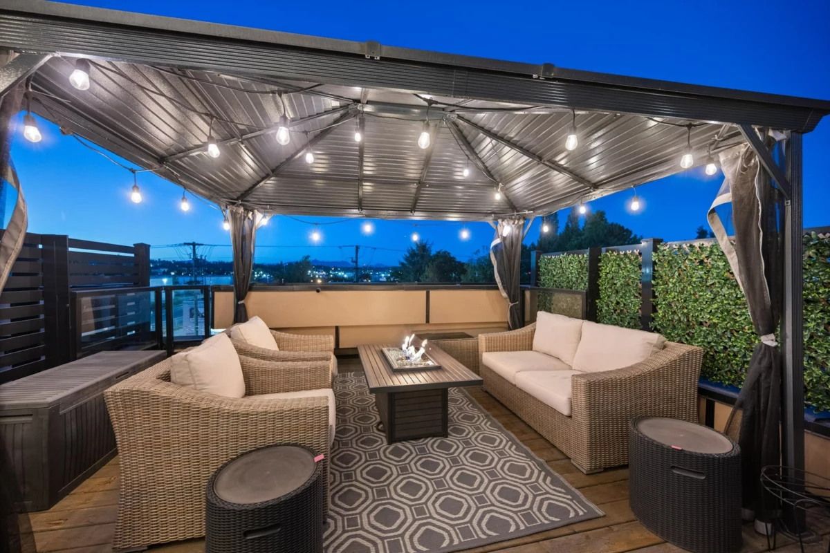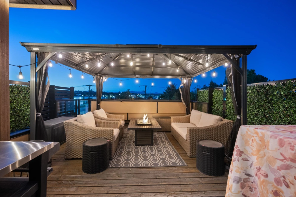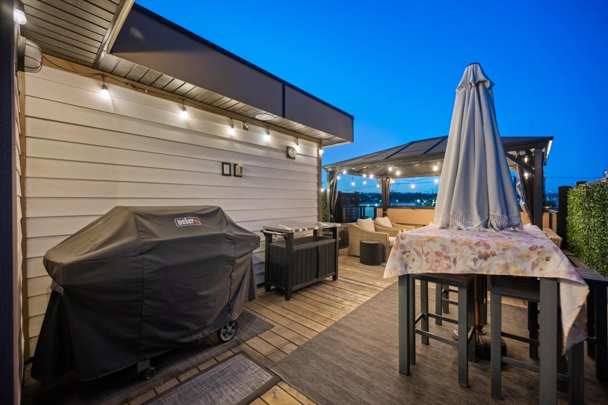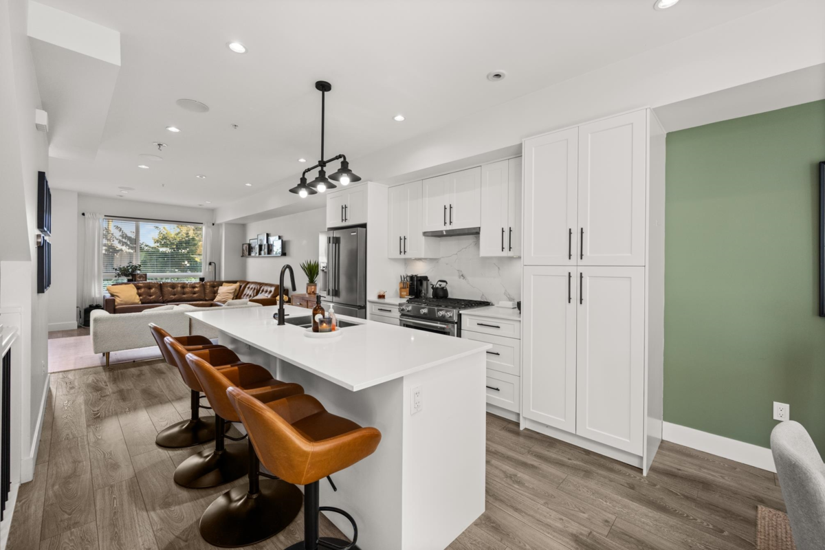Welcome to this beautifully designed 3 bed, 3 bath townhome offering a spacious open floorplan. Enjoy a stunning rooftop terrace—perfect for entertaining, relaxing, or taking in the sunset views. Thoughtfully designed with ample storage and a potential flex space for additional living. Located in a central Langley neighbourhood just steps from the future SkyTrain, shops, restaurants, transit and all amenities. This home is complete with air conditioning, a gas stove, and quality finishes throughout. Style, comfort, and convenience all in one exceptional home!