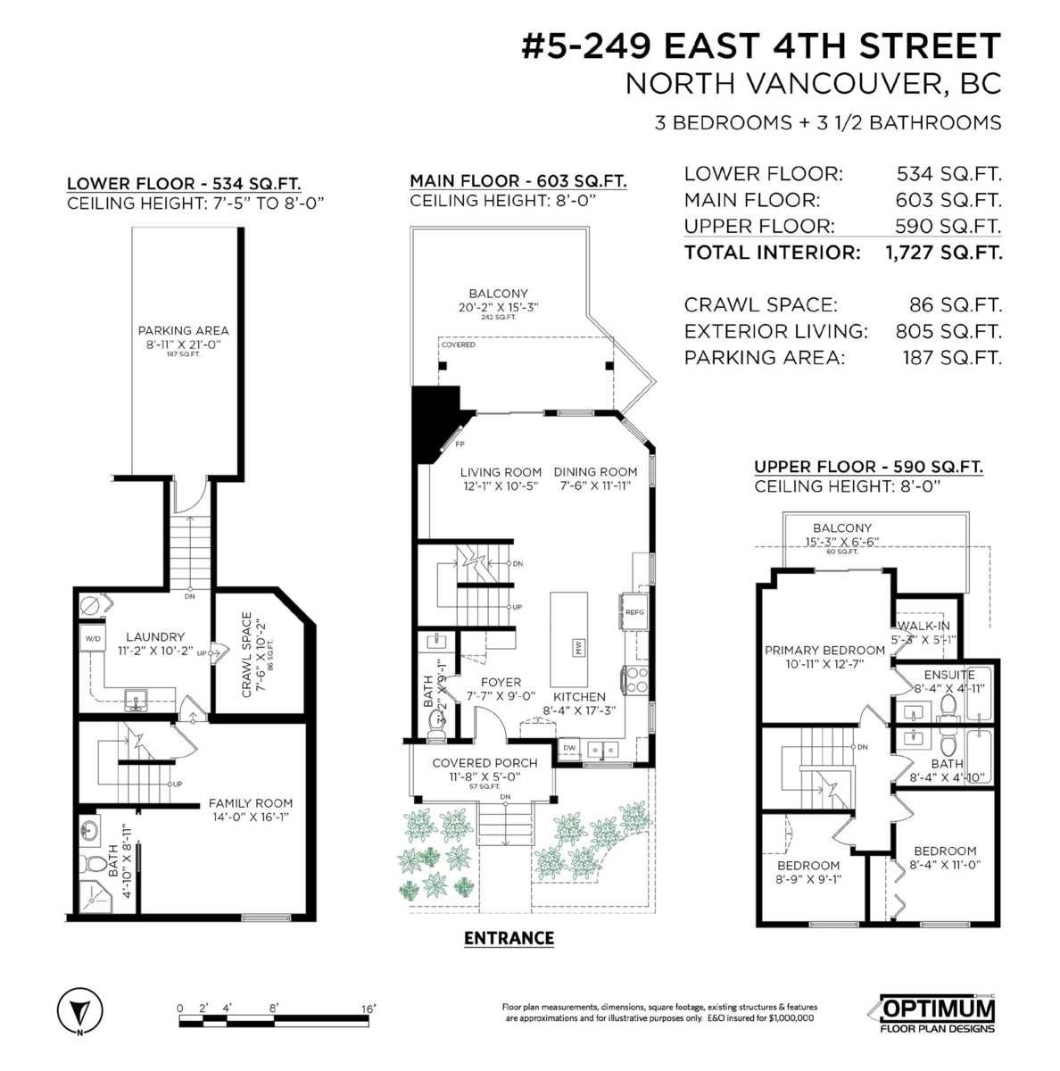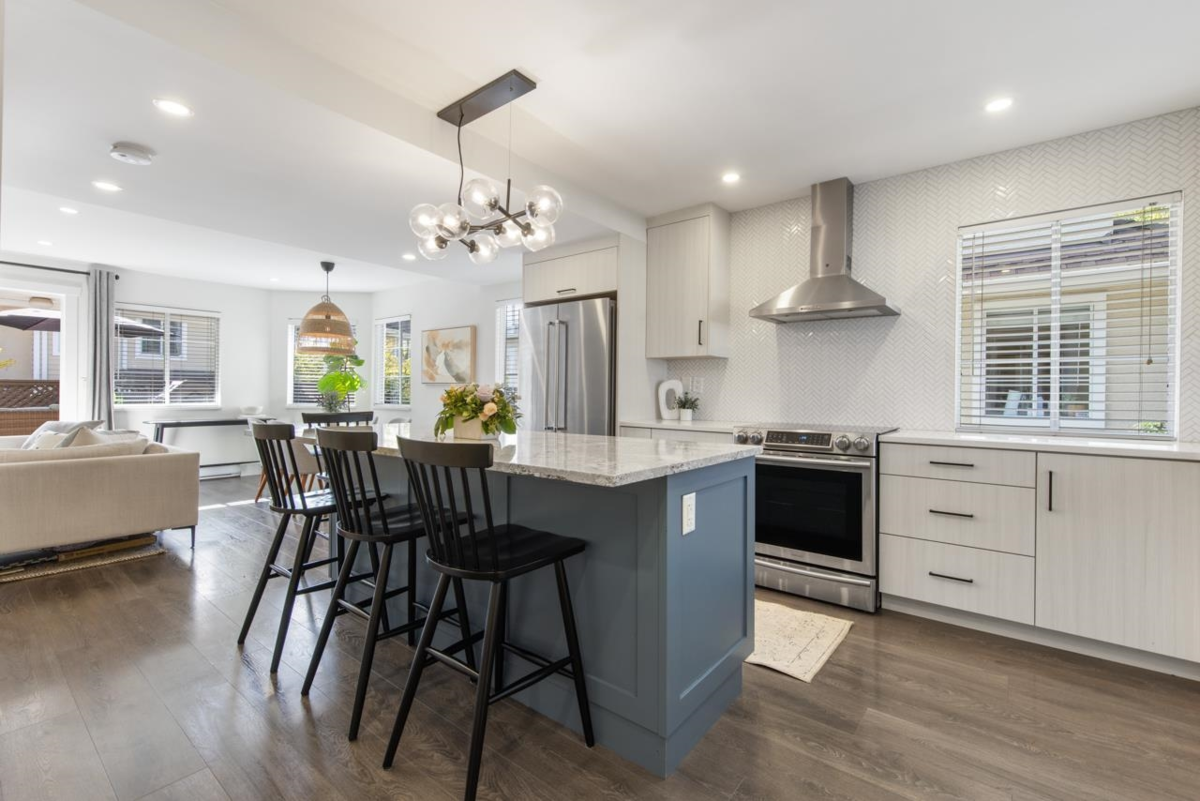 Experience the feel of a detached home in this BEAUTIFULLY RENOVATED, END-UNIT townhome nestled on a quiet, tree-lined street in sought-after Lower Lonsdale. The open-concept main floor showcases a sleek kitchen with oversized island, gorgeous flooring, and a refined fireplace surround and seamlessly flows to a sun-drenched 300 sq ft patio—perfect for entertaining. Upstairs, find 3 generously sized bedrooms and 2 spa-inspired bathrooms, including a serene primary retreat with ensuite, walk-in closet & patio. Lower level offers a recreation space, (easy conversion to 4th bedroom) with heated floors and full ensuite. In the basement is a spacious laundry/mudroom, ample crawlspace storage which connects directly to two secure parking stalls, and a dedicated locker.