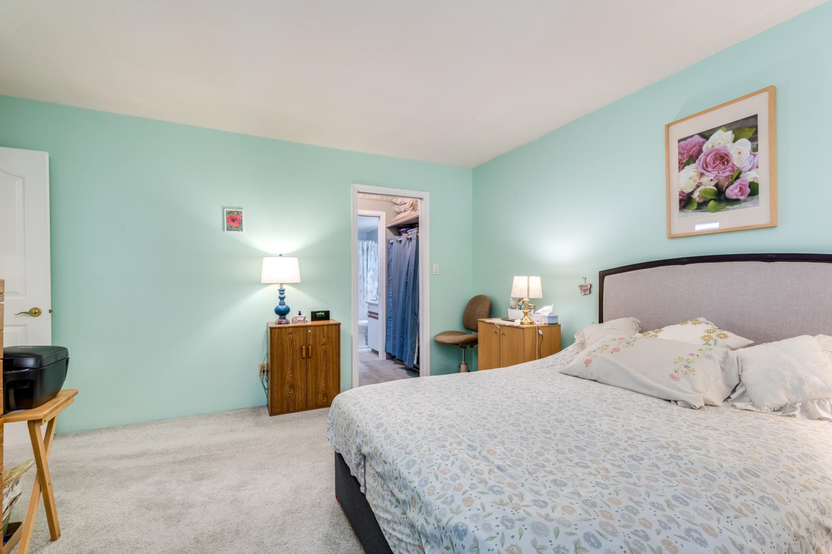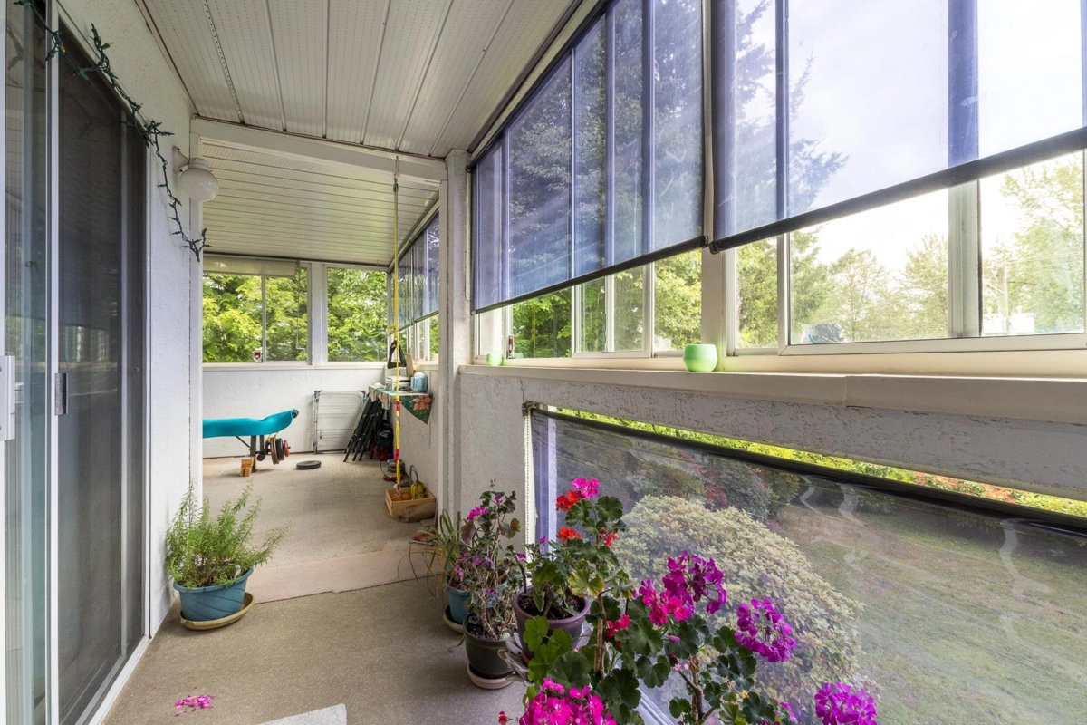 Located in a quiet, gated, 55+ adult-oriented complex at the end of a cul-de-sac. This ground floor entry end unit is spacious and bright with 3 bedrooms, 2 bathrooms, and over 1,400 sqft of living space. Huge oak kitchen with wall oven, stove top, breakfast bar, lots of cupboards, and open eating area. Formal dining room next to sunken living room with access to large solarium sundeck with southern view. Primary bedroom with walk-through closet and private 3 piece ensuite. 2 additional good size bedrooms, 4 piece main bath, and huge laundry room. Well maintained building with lush gardens. Walking distance of shopping, transit, and amenities. Bonus 2 parking - 1 open and 1 private garage, roof replaced in 2021.