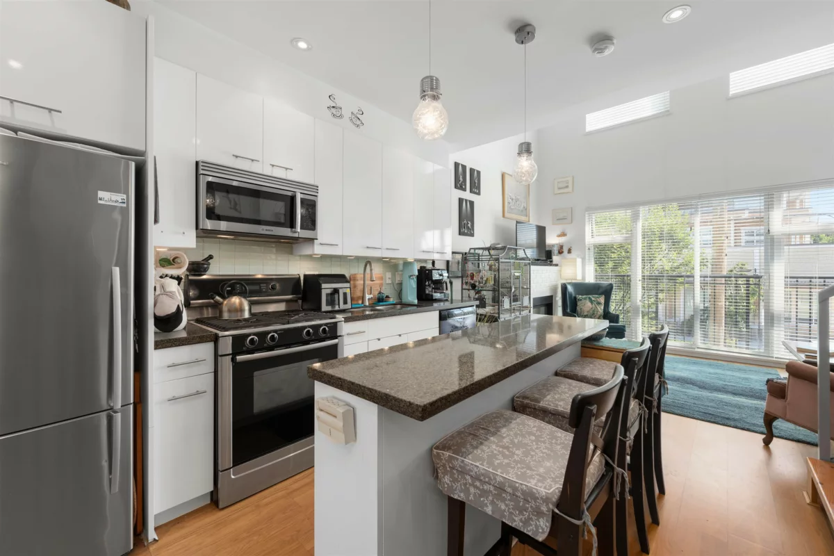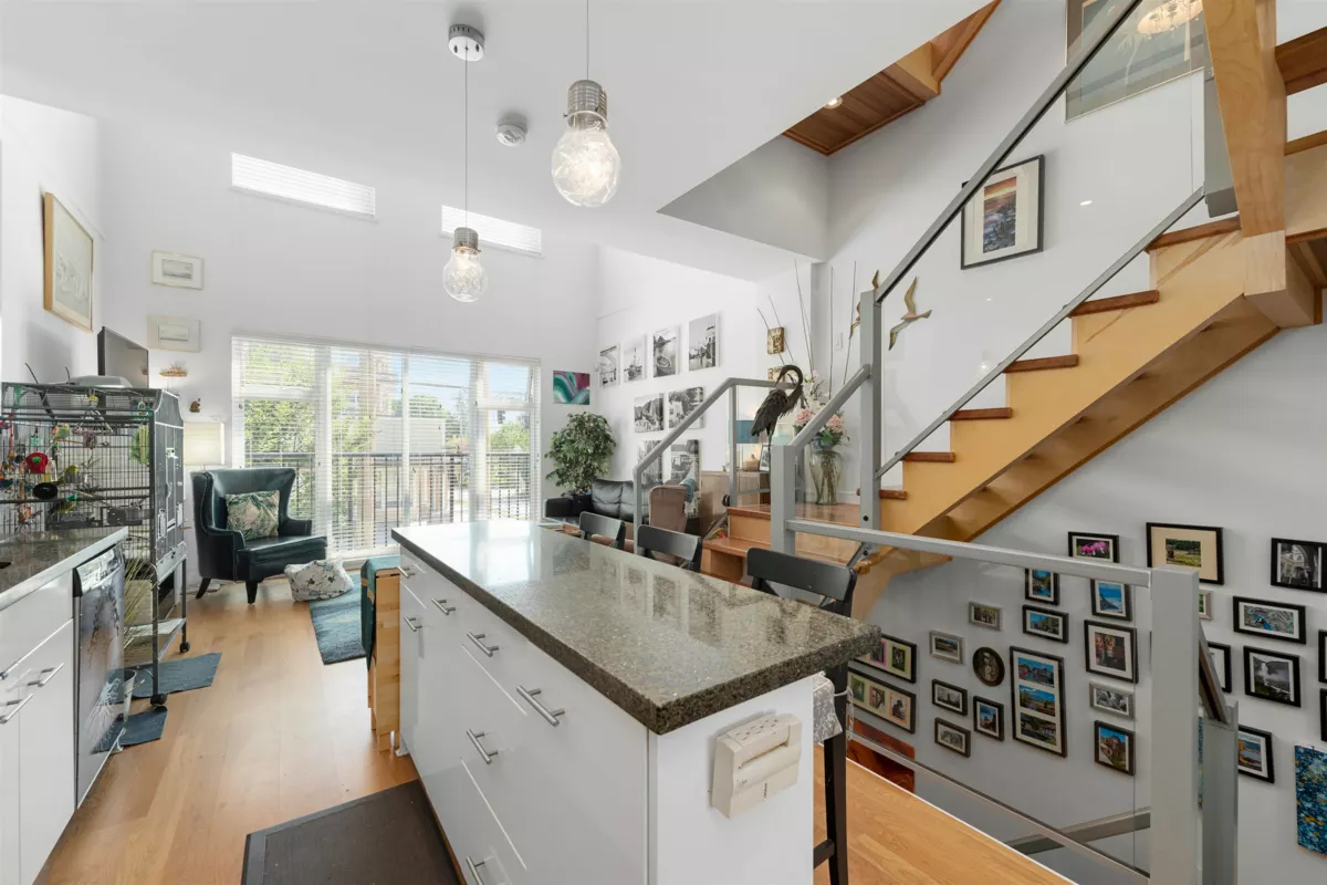 Welcome to Steveston Views - a seldom available true 2 Bedroom loft-style townhome in the no.1 voted neighbourhood. With soaring ceilings, open design, and a stunning floating wooden staircase, this residence is the perfect balance between a modern city loft yet keeping Steveston's vibe. Natural light floods the space, creating a bright and airy home at all times. With it's over 340 sqft rooftop deck with gas outlet- your private perch to entertain, unwind, and take in those iconic Steveston sunsets. Paired perfectly with not only the charm of re-owned Steveston’s boardwalk, boutique shops, and vibrant dining scene but steps away from Garry Point Park and Steveston Community Park, all just steps away. 1 Parking Included. Rare design, unbeatable location, and lifestyle all in one.