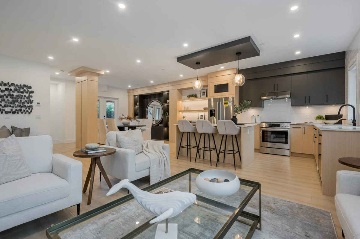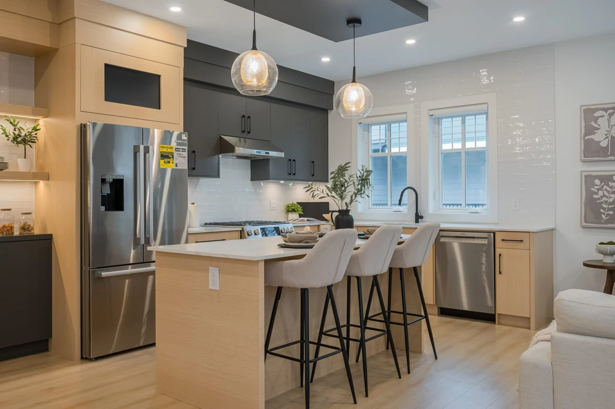 Step into this beautifully designed 3-bedroom, 3-bathroom townhome at Apex Homes, thoughtfully crafted for those who appreciate both style and functionality. The open-concept main floor features over-height ceilings that create a bright, spacious atmosphere - ideal for entertaining or enjoying time with family. At the heart of the home, the kitchen impresses with custom wood cabinetry, premium stainless steel appliances, and engineered quartz countertops, seamlessly blending elegance with everyday practicality. Whether you love to cook or simply enjoy a well-designed space, this kitchen is ready to meet it all. Ideal and central location with near schools, restaurants, recreation, and more! UNIT #2, #4 & #6 SOLD!!! *NOTE: Images from show home Unit #1. Open House Sat, Sun 2pm-4pm.