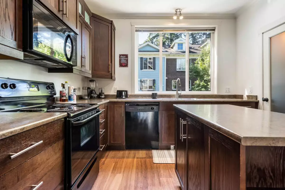 END UNIT in PRESTIGIOUS FOREST TRAILS @ GARRISON CROSSING! This cozy and well kept 2 bed / 2 bath home has a warm aesthetic with meticulous maintenance over its 2 OWNER lifespan! 3 storey layout with an OPEN CONCEPT main floor centred by bright windows only offered to END UNITS in the complex. Kitchen has nice solid cabinetry with SS appliances, a pantry space & offers a covered deck overlooking backyard for added entertaining space. Master bedroom includes ensuite and laundry nearby! Easy conversion to add a 3rd bedroom on ground level off TANDEM/DOUBLE GARAGE or a bathroom/workshop/office space (all plumbing ready!) with a walkout to peaceful green drop backyard! LOCATION LOCATION just steps to all amenities, WORLD CLASS Vedder River, schooling, transit & much more.