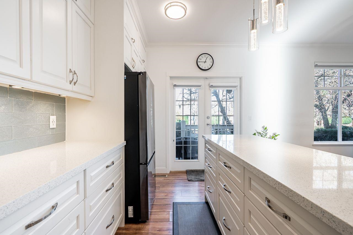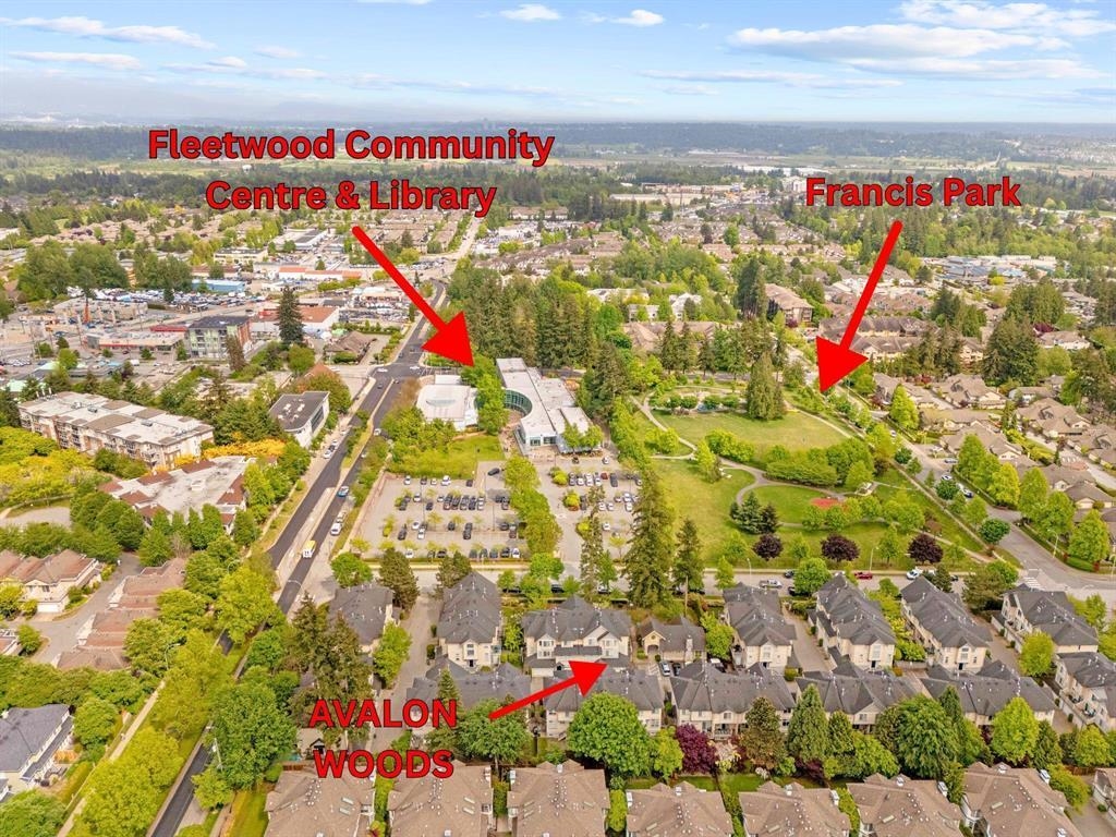 Welcome home to Avalon Woods. This completely renovated 3-bedroom, 2.5-bathroom townhome will impress the most discerning buyers. Thoughtful upgrades include an open-concept gourmet kitchen, stainless steel appliances, quartz countertops, designer lighting, and wide-plank hardwood flooring throughout. This rare end unit also features a large room in basement that can be used as a rec room, office, guest room or as needed per your requirements. Double-wide garage and a generous private yard with a deck perfect for BBQ and outdoor entertaining. Enjoy an unbeatable location, within steps to the Fleetwood Community Center & Library, shopping, transit and future skytrain. Nearby amenities include Fleetwood Leisure Center, highly rated elementary and secondary schools (K–12).