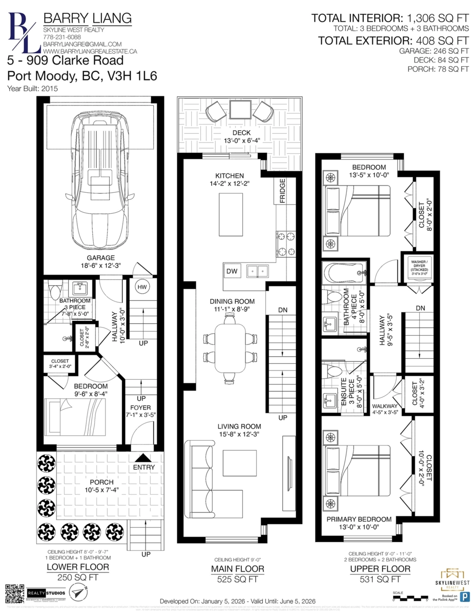Welcome to Clarke Townhomes in Port Moody! This stylish & functional townhouse offers 3 bedrooms, 3 full baths, & an attached garage. The lower level features 1 bed + 1 full bath, ideal for guests, a home office, or flexible living space. The bright & airy main level showcases an open-concept living & dining area that flows seamlessly into a contemporary kitchen complete with S/S appliances, quartz countertops, & ample storage. Step out onto the balcony off the kitchen & enjoy lots of natural light. Upstairs, you'll find 2 bedrooms + 2 full baths. Soaring vaulted ceilings & ample closet space enhance both comfort & style. Ideally located close to schools, transit, shopping, & recreation. Includes 2 parking space: an attached single garage & a carport. Open House Jan 17/18 Sat/Sun 2-4pm.