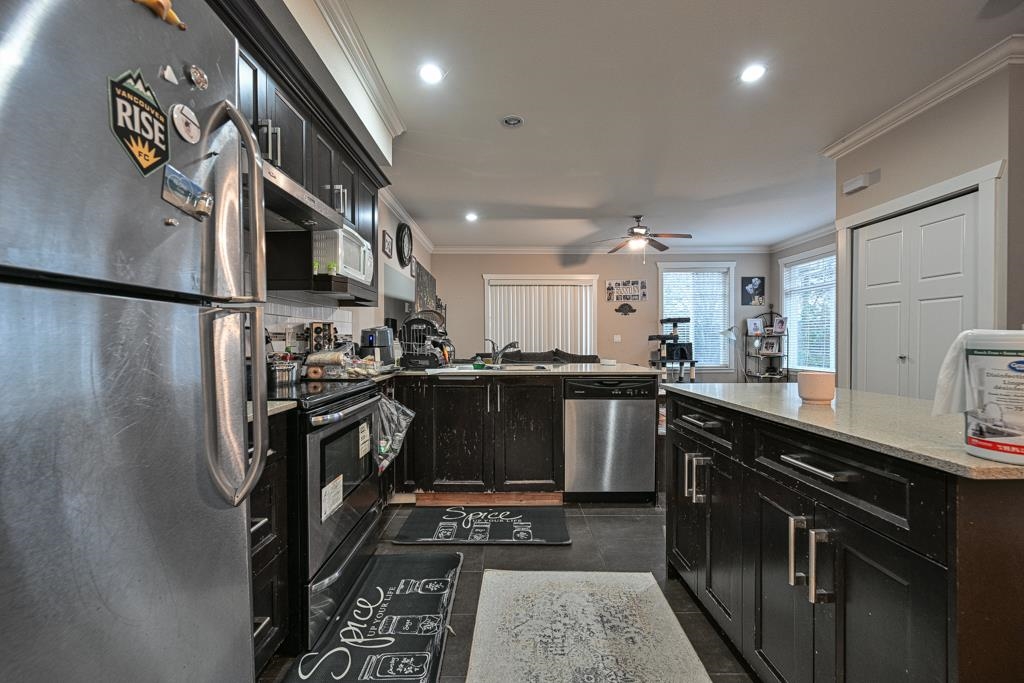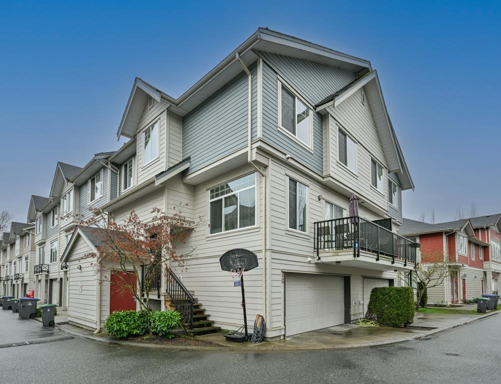 Welcome to Guildford Greens! This bright and spacious 4-bedroom corner townhouse offers an excellent open-concept layout with abundant natural light, large windows, laminate flooring, and a cozy fireplace. The gourmet kitchen features a large island, granite countertops, stainless steel appliances, and ample cabinetry, with access to a private balcony—perfect for everyday living. Upstairs includes three generously sized bedrooms, while the lower level offers a versatile rec room used as a 4th bedroom. Additional highlights include in-suite laundry, a double side-by-side garage, and very low maintenance fees in a well-managed, kids-friendly complex. Pets allowed with restrictions and rentals are permitted. Centrally located close to schools, shopping, parks, transit & mall