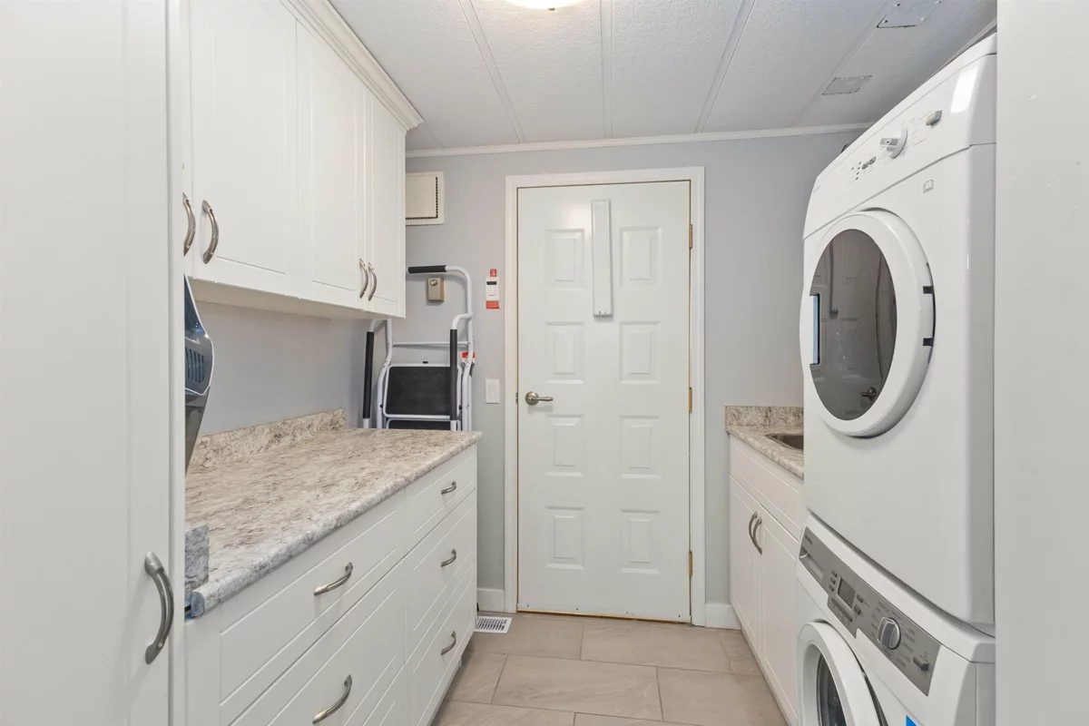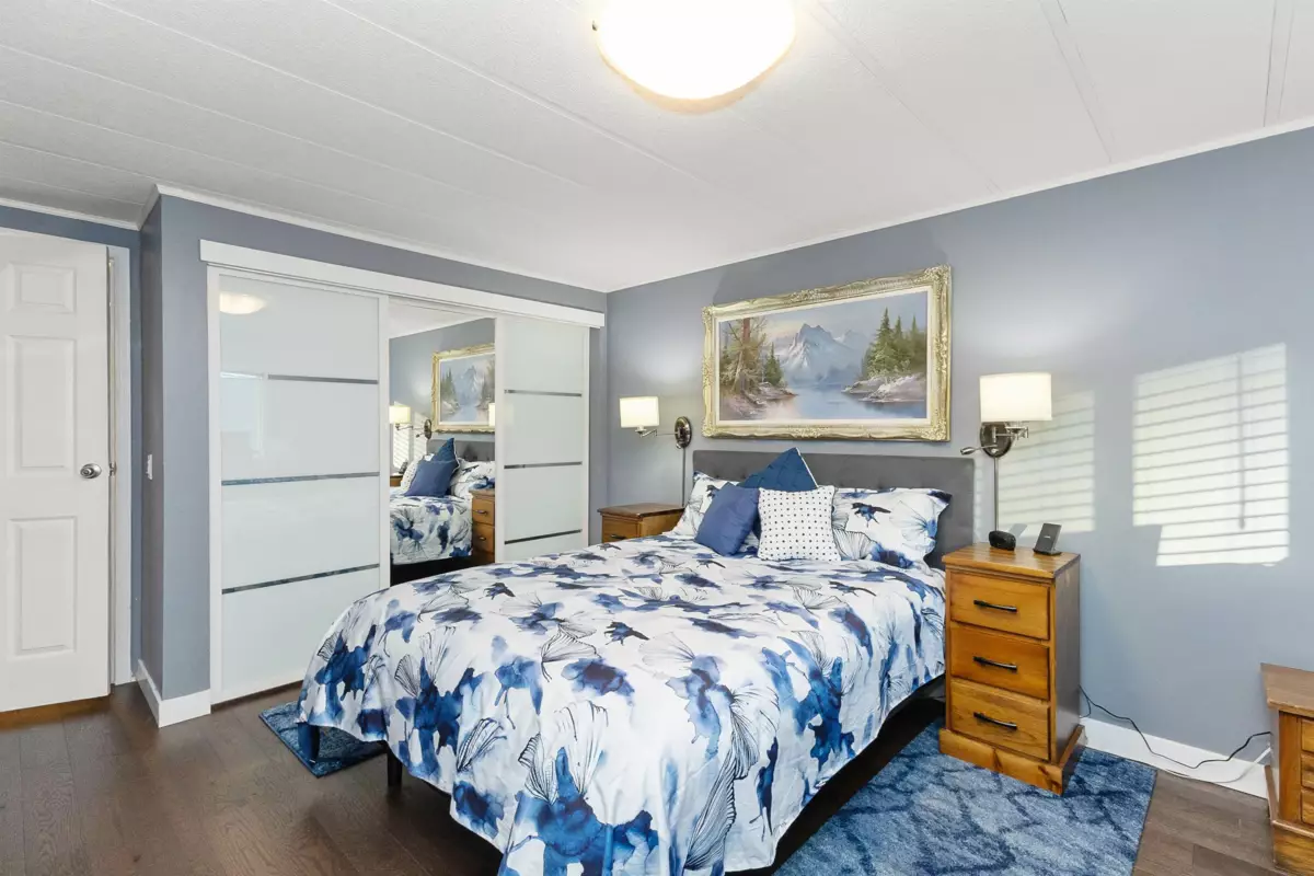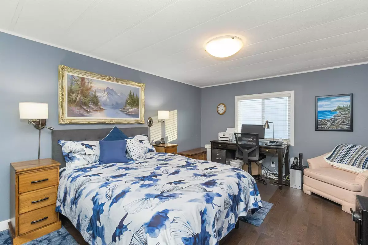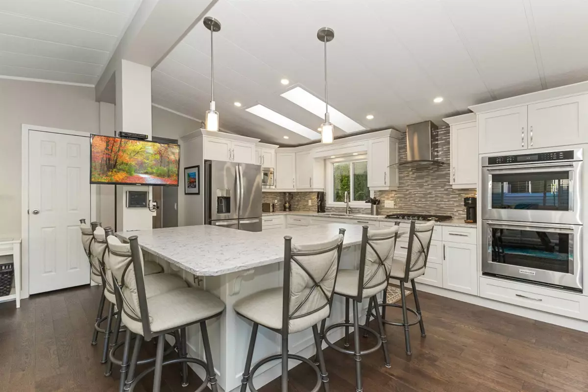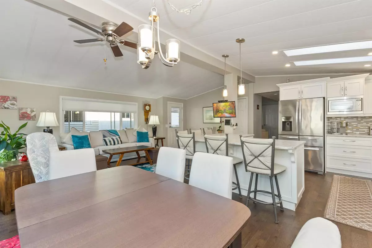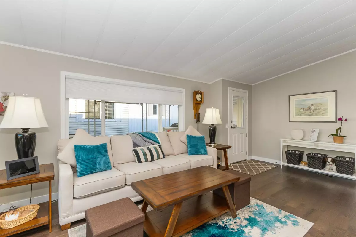 YOU'LL BE GLAD YOU FOUND THIS HOME..! #50 Deer Creek Estates: EXTENSIVELY RENOVATED from top to bottom! FEATURES; Air conditioning, newer furnace, flooring, roof, windows (some w/remote controlled blinds), luxury bathrooms with low-step shower stall and a walk-in hydro tub in ensuite (from the large Primary suite). Fantastic kitchen with built-in ovens, top of the line appliances, Quartz Silestone counters, beverage station, pull-out draw pantry and entertainment-sized island (w/storage) combining living and dining areas seamlessly. Large den w/french doors (integral blinds). Laundry with sink, storage and side access. Covered balcony with nat-gas bbq hookup. Two sheds w/power! New driveway and lawn for year-round curb-appeal! Allowed: 1 pet 14" / 12lb. +55yr owner. +17yr owner children.