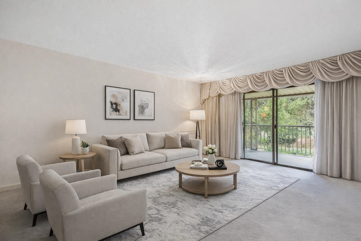 Here is a great Top Floor location at Fircrest estates! Investors, note that rentals are allowed. Great cash flow opportunity in a quiet complex. Downsizers, the moment you walk in, it feels like home and offers an abundance of space for those looking to downsize. The home is 1,127 sq ft with 2 bedrooms (1 can serve as a den or fill whatever need you may have) and 2 bathrooms. In-suite laundry and 2 decks offering natural light and views. All of this is a quiet location backing onto a school and within walking distance to Afterthoughts cafe and other shops and restaurants. This community is 55+ age restricted, rentals allowed, pets not allowed. Set up your private showing today! Pictures are Virtually Staged with contemporary furniture.