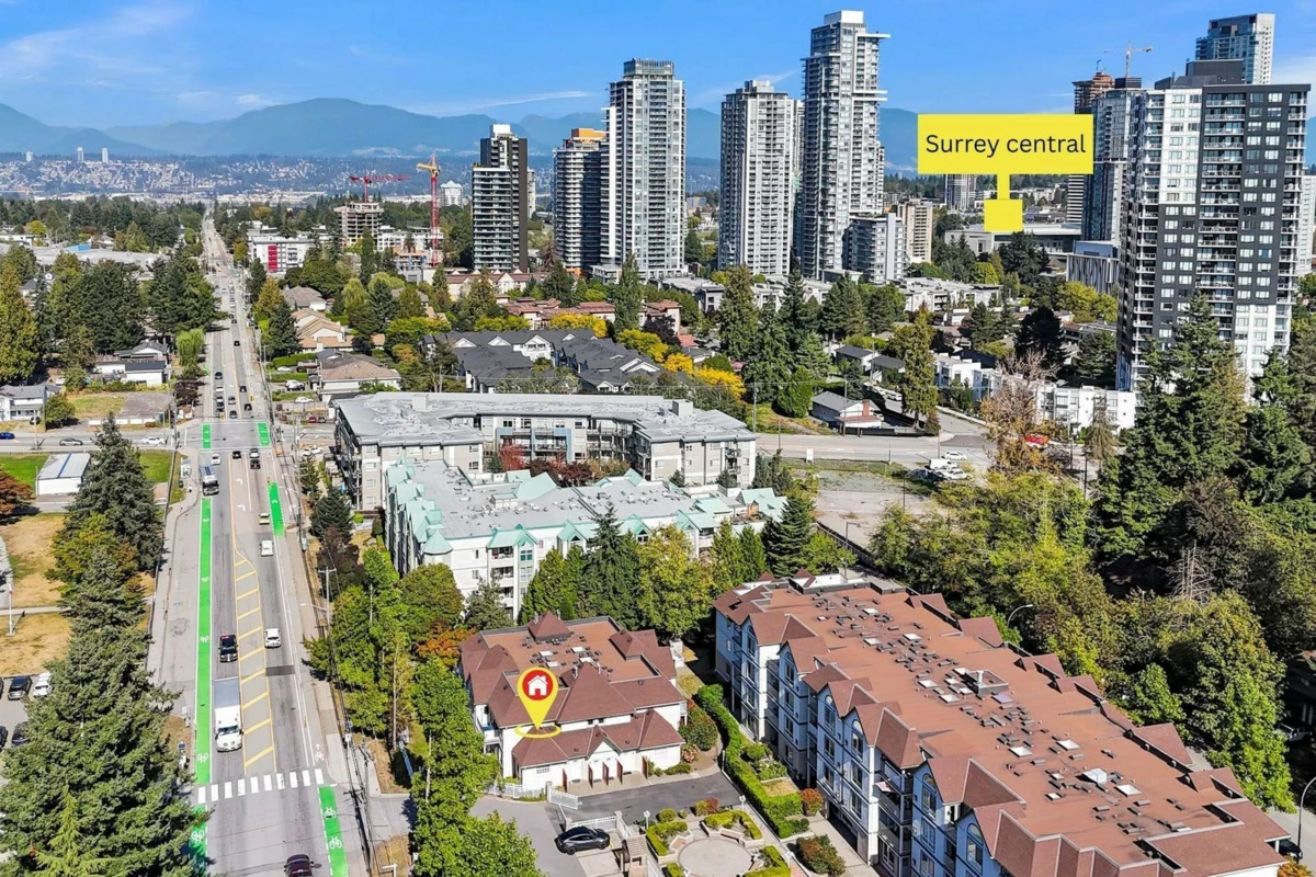 Welcome to this beautifully maintained and spacious ground-floor corner townhouse! This 3 BDRM, 2 BTH home offers over 1,250 sq. ft. of comfortable living with plenty of natural light throughout the day. The layout features a generous dining area, a bright living space, and direct access to a outdoor patio perfect for relaxing. Inclds. 2 PRKG stalls and a storage locker, access to a community garden. Recently updated with new laminate flooring, fresh paint, light fixtures, and a new hot water tank. Steps from Surrey Central SkyTrain, SFU, Central City Mall (T&T, Walmart), City Hall & Library, Surrey Memorial Hospital, all levels of schools, and Holland Park/Royal Kwantlen Park, everything you need is at your doorstep. Unit is well managed, family oriented. Book your private showing today.