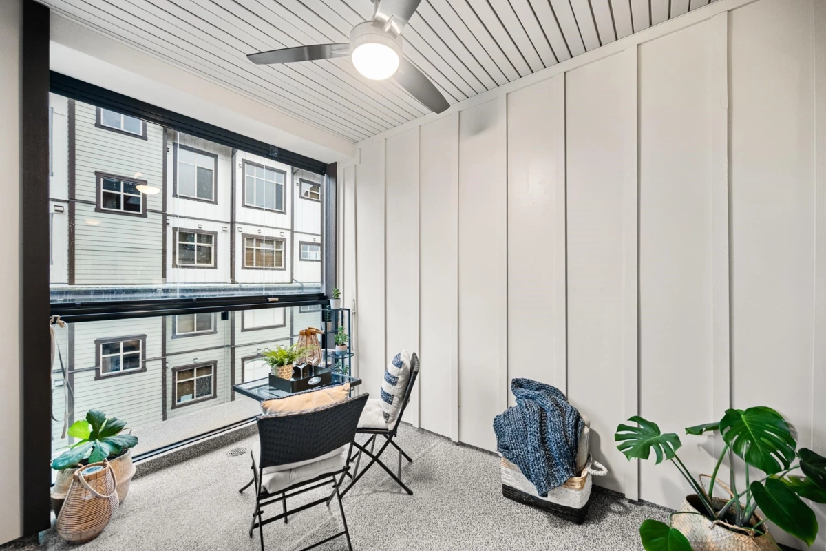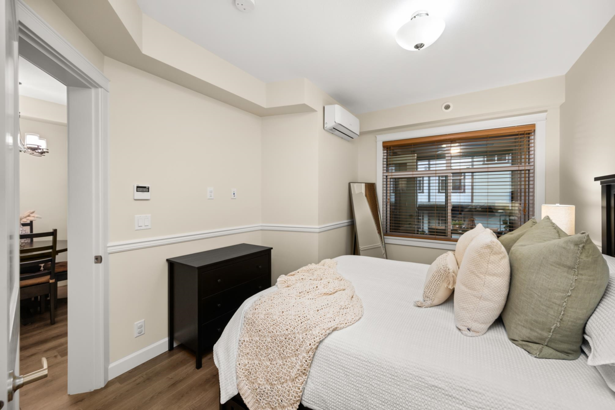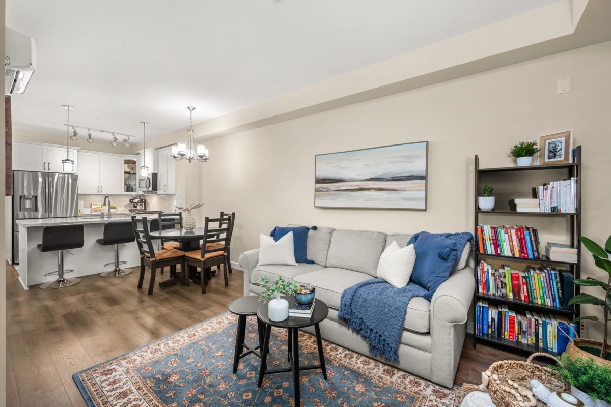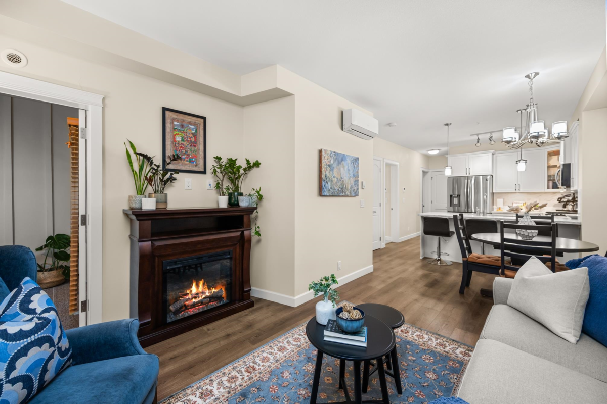Make 2026 the year you come home to this 2 Bed & Den condo where your lifestyle meets convenience with quick access to Hwy 1, a short stroll to Carvolth Bus Exchange & many retail spots. Prepare meals in the stylish kitchen complete with dual fuel, convection range & gas cooktop, quartz countertops & soft-close cabinetry. Unwind in your south facing, sunlit, retractable glass solarium, enjoying indoor-outdoor living all year round with a gentle breeze from the built-in ceiling fan & the ease of your own gas BBQ connection. After a busy day enjoy the comfort of heated bathroom floors & the quiet efficiency of the heat pump. Your daily routine is made easy with parking for 2 incl. 1 spot ready for your electric car & a generous storage locker-perfect for bikes, outdoor gear or even a freezer