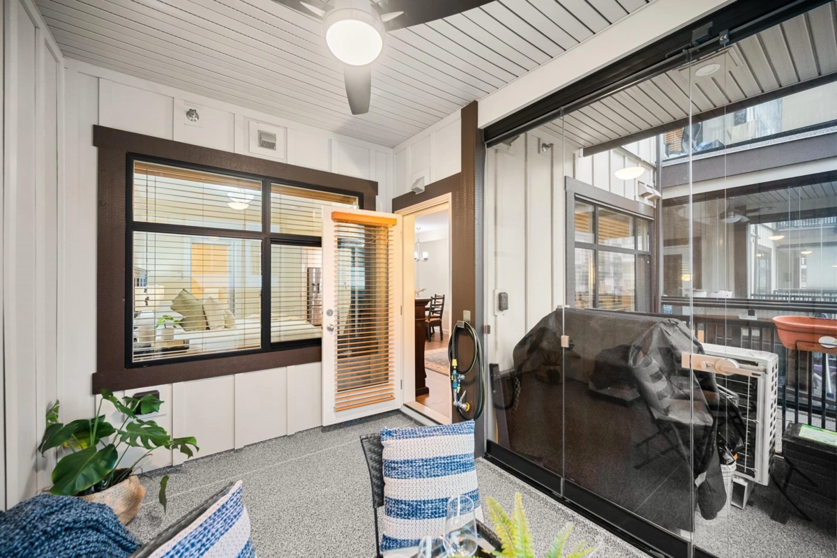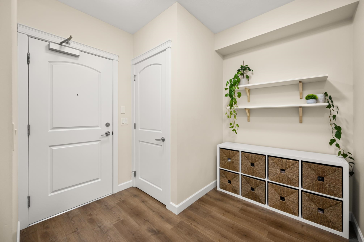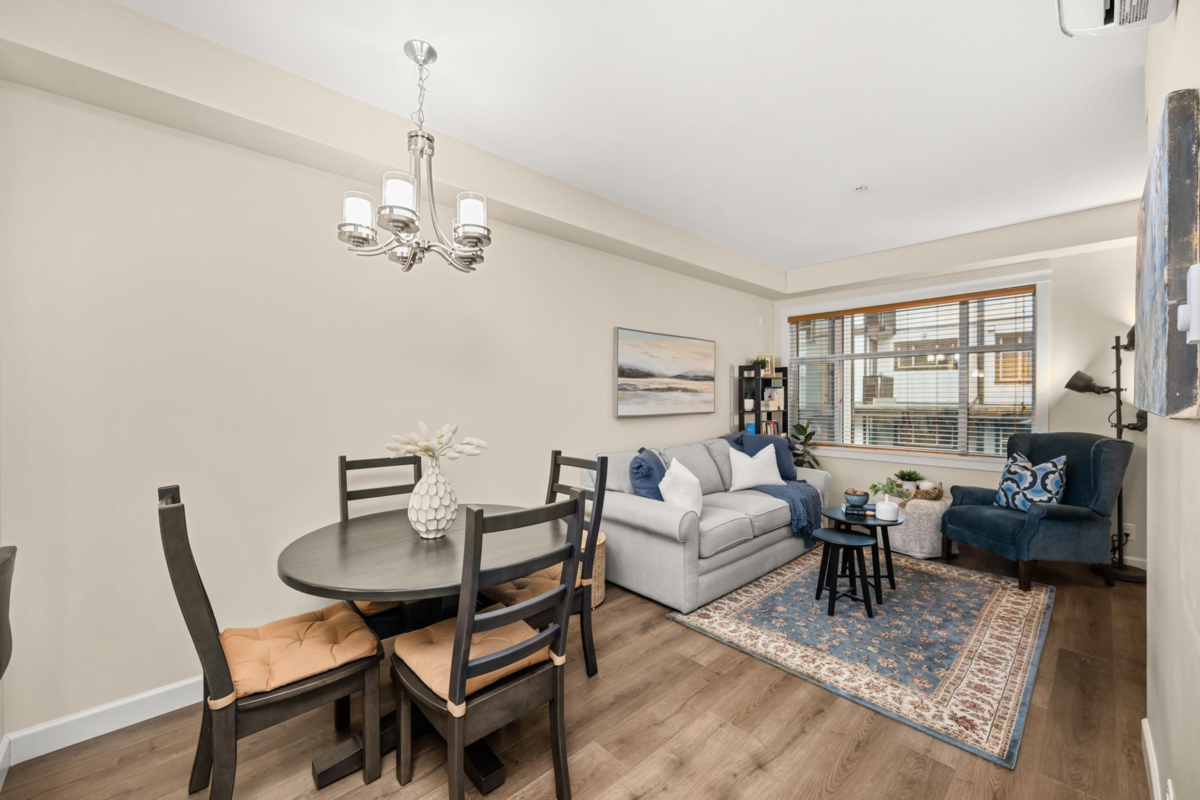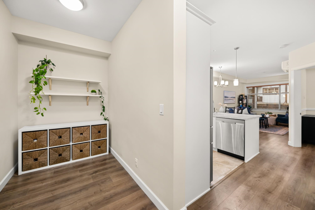 Make 2026 the year you come home to this 2 Bed & Den condo where your lifestyle meets convenience with quick access to Hwy 1, a short stroll to Carvolth Bus Exchange & many retail spots. Prepare meals in the stylish kitchen complete with dual fuel, convection range & gas cooktop, quartz countertops & soft-close cabinetry. Unwind in your south facing, sunlit, retractable glass solarium, enjoying indoor-outdoor living all year round with a gentle breeze from the built-in ceiling fan & the ease of your own gas BBQ connection. After a busy day enjoy the comfort of heated bathroom floors & the quiet efficiency of the heat pump. Your daily routine is made easy with parking for 2 incl. 1 spot ready for your electric car & a generous storage locker-perfect for bikes, outdoor gear or even a freezer