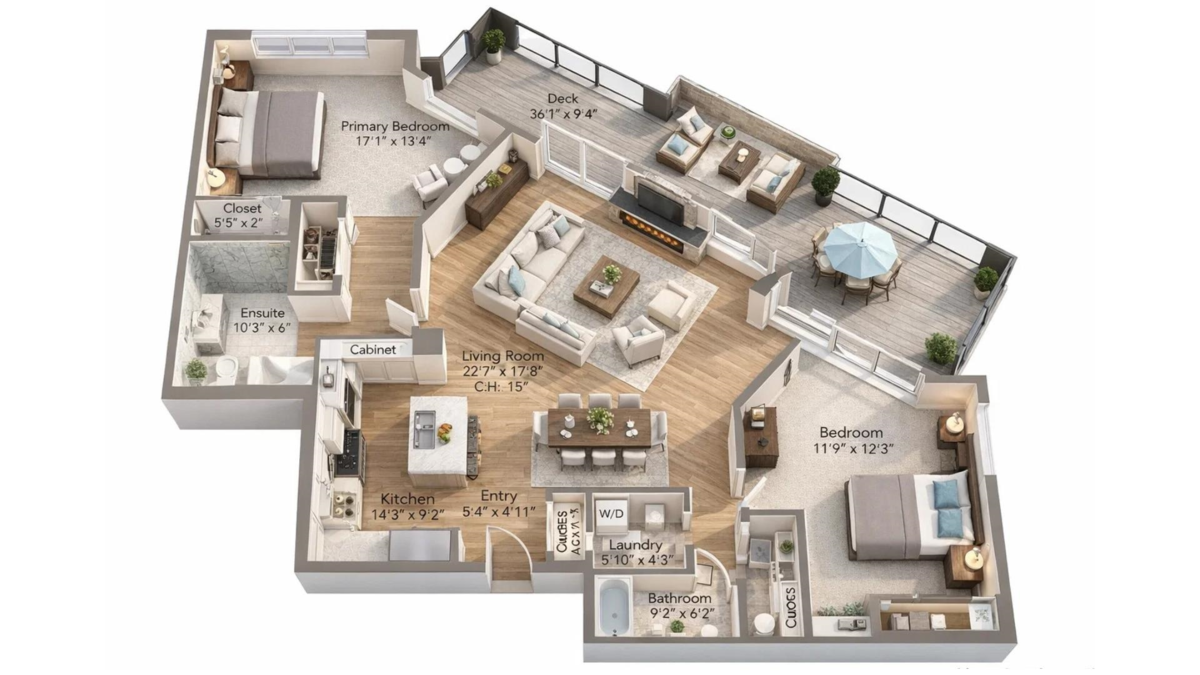 | Main Level | Living Room | 15' x 15' ft |