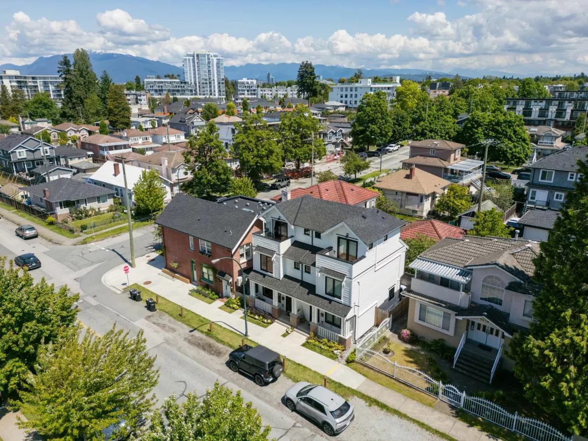 Stylish, well-appointed townhome in the heart of East Van, just off Nanaimo & 34th. This 3 bed + flex home is part of the beautifully restored Century House collection, blending modern comfort with heritage charm. Family-friendly layout features a full basement media room + versatile flex space ideal for office, gym, or studio. Top-floor primary retreat offers vaulted ceilings, double vanity ensuite & private balcony w/ city & mountain views. Two additional beds provide flexibility for kids, guests or WFH. Street-level access, ample street parking & walkable location near Cunningham Elem, parks, T&T & transit.