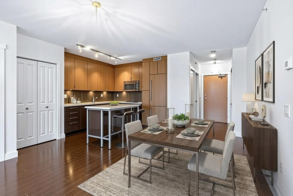 Waterfront living at The Foundry by Polygon, a concrete LEED Silver-certified building designed for the best of energy conservation, in the heart of False Creek. The bright 2-bed, 2-bath home offers a great open-concept layout with excellent bedroom separation for privacy. Enjoy floor-to-ceiling windows, high ceilings, and awesome views of the city, mountains and False Creek. The gourmet kitchen features quartz countertops, oak cabinetry, a large island, Bosch appliances. Private deck, walk-in closet, in-suite laundry, 2 parking & storage. Unbeatable location, steps to the Seawall, SkyTrain, schools, community centre, parks, Cambie shops and urban amenities. Amenities include gym, EV charging, bike storage, visitor parking, courtyard with playground, community garden.Virtually Staged!
