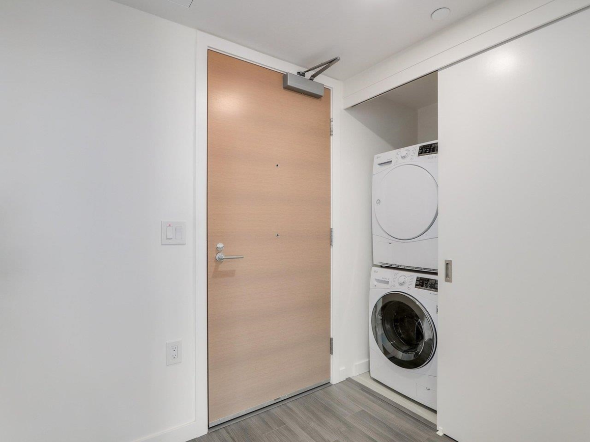 Beautiful 1 bedroom in the boutique concrete building "Elenore on Fifth" located at 5th and Main St. Offering refined finishings such as a gourmet kitchen with quart counters & back-splash, wide plank flooring throughout, integrated fridge, Wolf gas cooktop/oven/micro, Fisher Paykel d/w, LG w/d, heated floors (bath), A/C, roller blinds, in-suite storage and much more. Located minutes from Science World Skytrain station, and Broadway extension ( scheduled to open 2027). Access to the Main street corridor is at your doorstep conveniently providing all of your essential daily needs. Minutes from the vibrant Olympic Village and Seawall. Welcome to your future home. 1 parking stall and 1 bike pedestal included.This unit is like new!Open Sat, Sept 13 2-4pm.