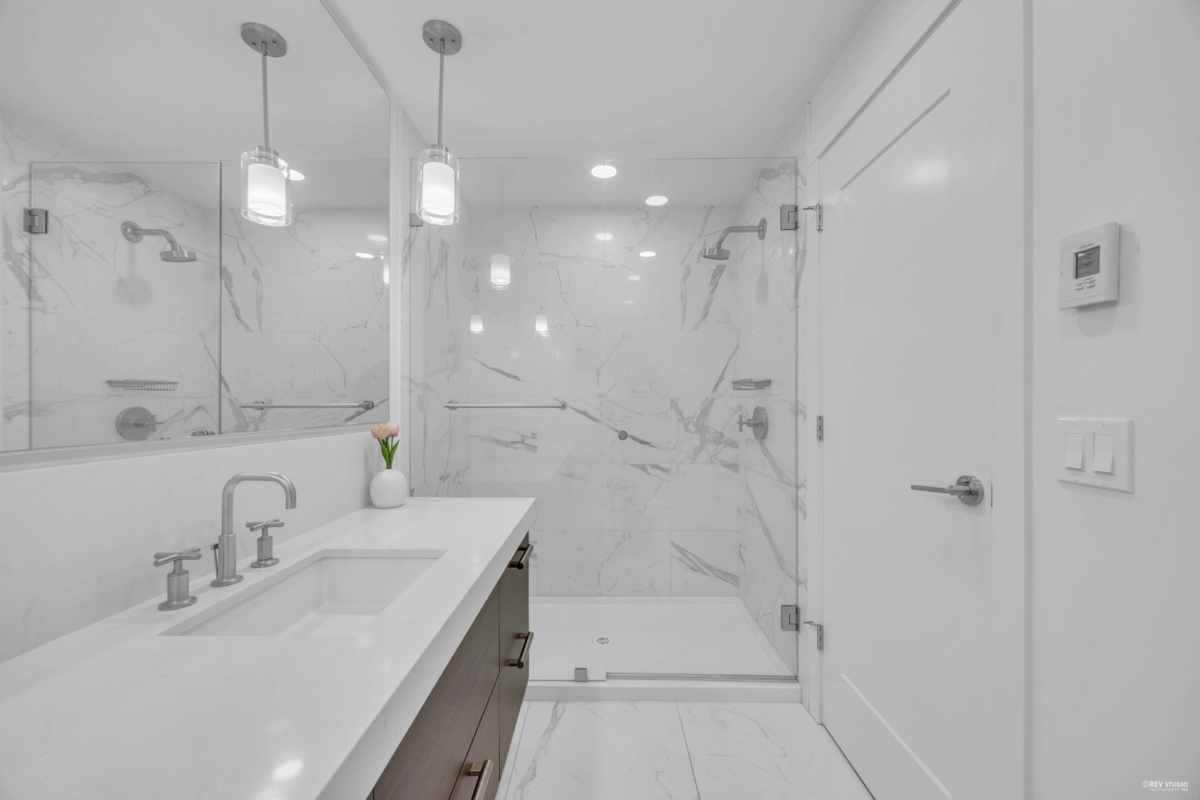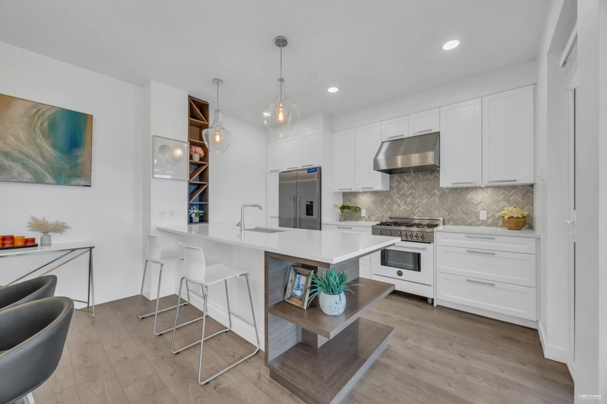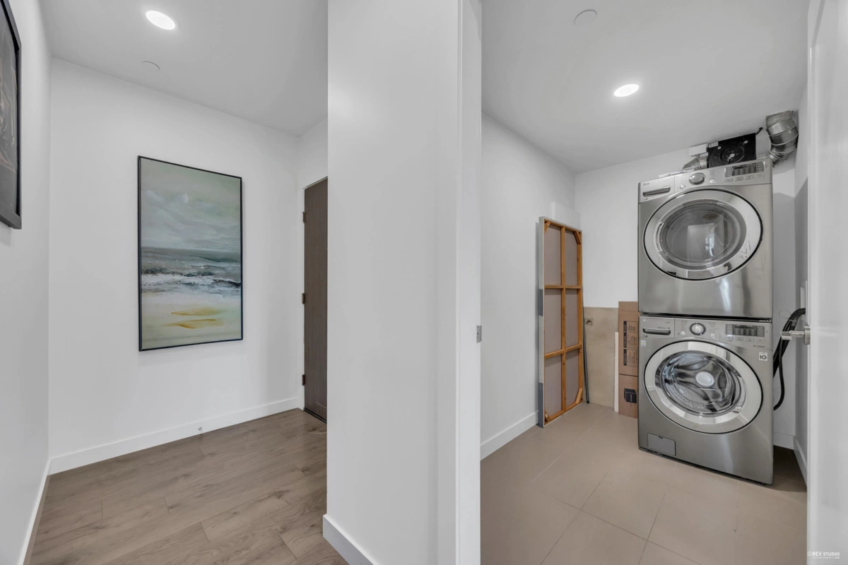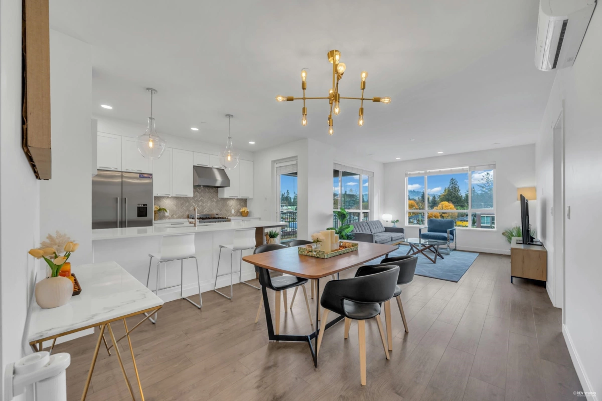 Corner unit in Abbotsford’s luxury building, The Residences at Gateway. This spacious 2-bedroom, 2-bath suite offers premium finishes with a 9-foot ceiling, full laundry room, radiant bathroom floors, and heat pump/AC. Enjoy marble backsplash, wide plank flooring, and a balcony with a gas BBQ hookup. High-end appliances include a Bertazzoni gas range, Fisher & Paykel fridge, Bosch dishwasher, and built-in wine storage. Comes with 2 secure underground parking spaces and a large 8' x 8' storage locker next to your parking. Covered by New Home Warranty. Close to downtown Abbotsford, Highway 1, shopping, and dining.