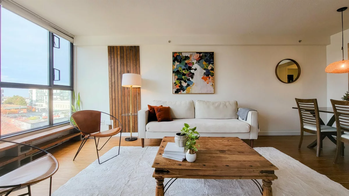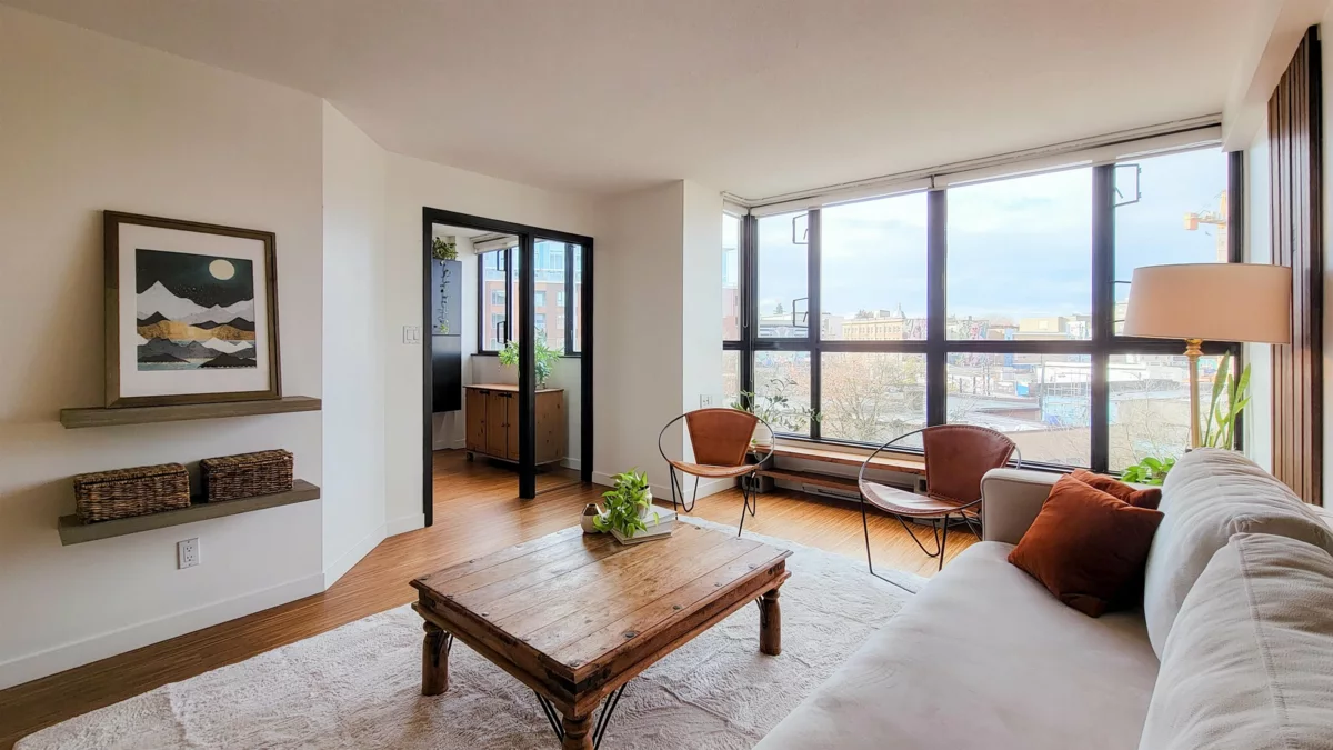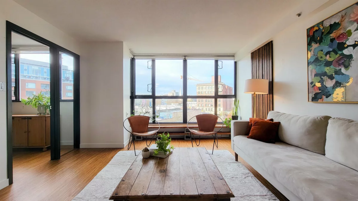 Unbeatable lifestyle in the heart of Mount Pleasant. Located steps to shopping, Mt. Pleasant community center, library, parks, shopping, and future sky train station. Enjoy the pristine views of mountains and city through floor to ceiling windows along the southwest aspect of the apartment. Large bedroom and bonus den that can be used as an office or nursery. Open concept living with an abundance of natural light. New washer and dryer purchased in 2025. Invest in a concrete building in a location that is second to none. Rentals and pets are allowed.