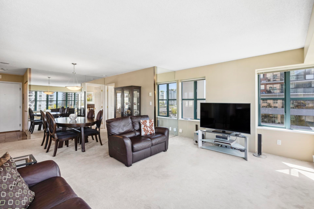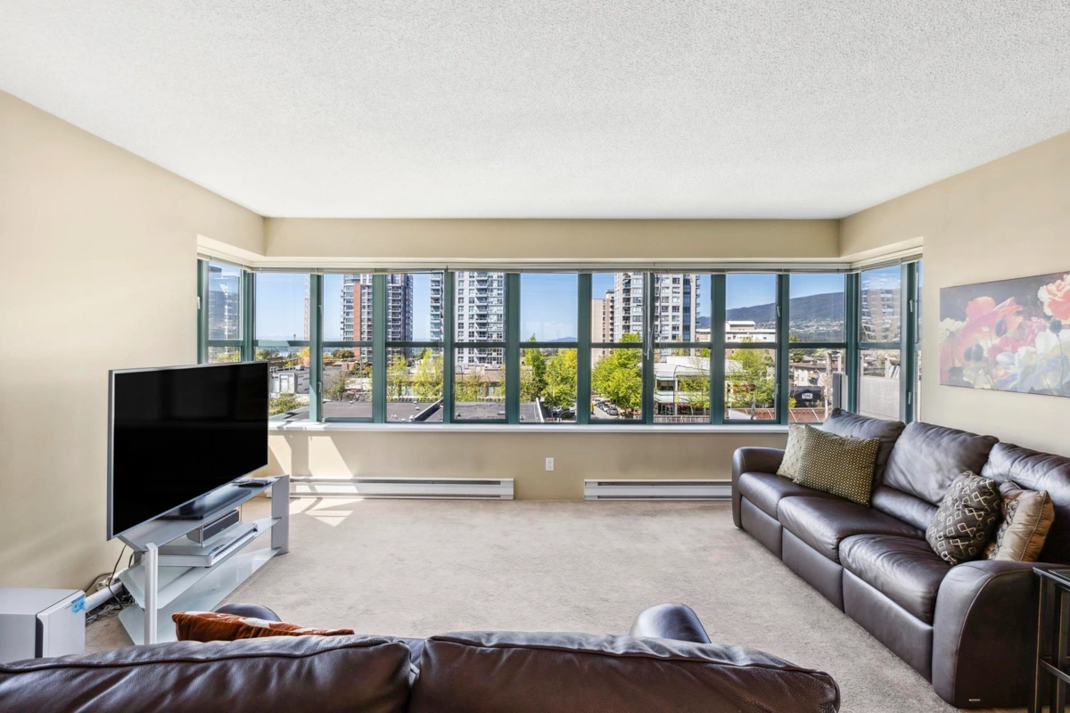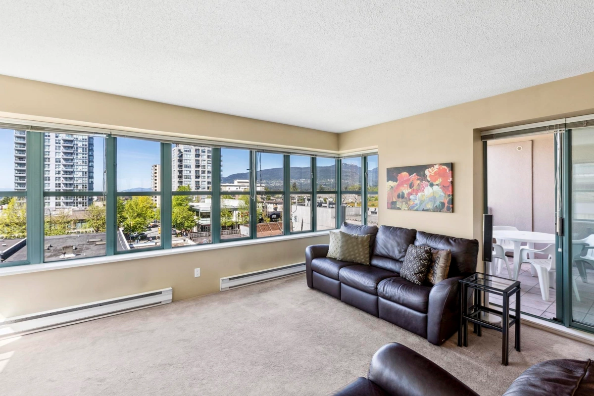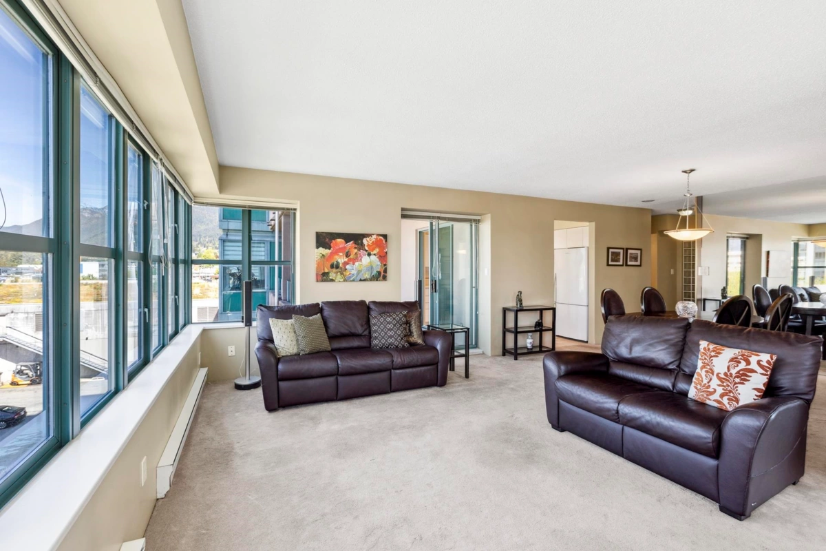 SW corner suite at ‘The Sovereign’ in the heart of Central Lonsdale. This well-maintained home offers 2 bdrms, 2 baths, & 961 sq/ft w/ a bright exposure & sweeping city skyline, mountain, + sunset views. Offering a practical floor plan w/ spacious rooms throughout. The open plan living/dining rm offers an abundance of windows to enjoy the outlook, & feature sliders to a west facing balcony w/ stunning views of the Lions. The kitchen is a comfortable size & includes a built-in eating table & sliders to the balcony. The primary bdrm features a large closet, ample space for wardrobes, & has a 3-pce ensuite. The second bdrm is great for family, as an office, or a guest room. Completing the home is a 4-pce bathroom & a large laundry closet. Steps to all Lonsdale amenities.