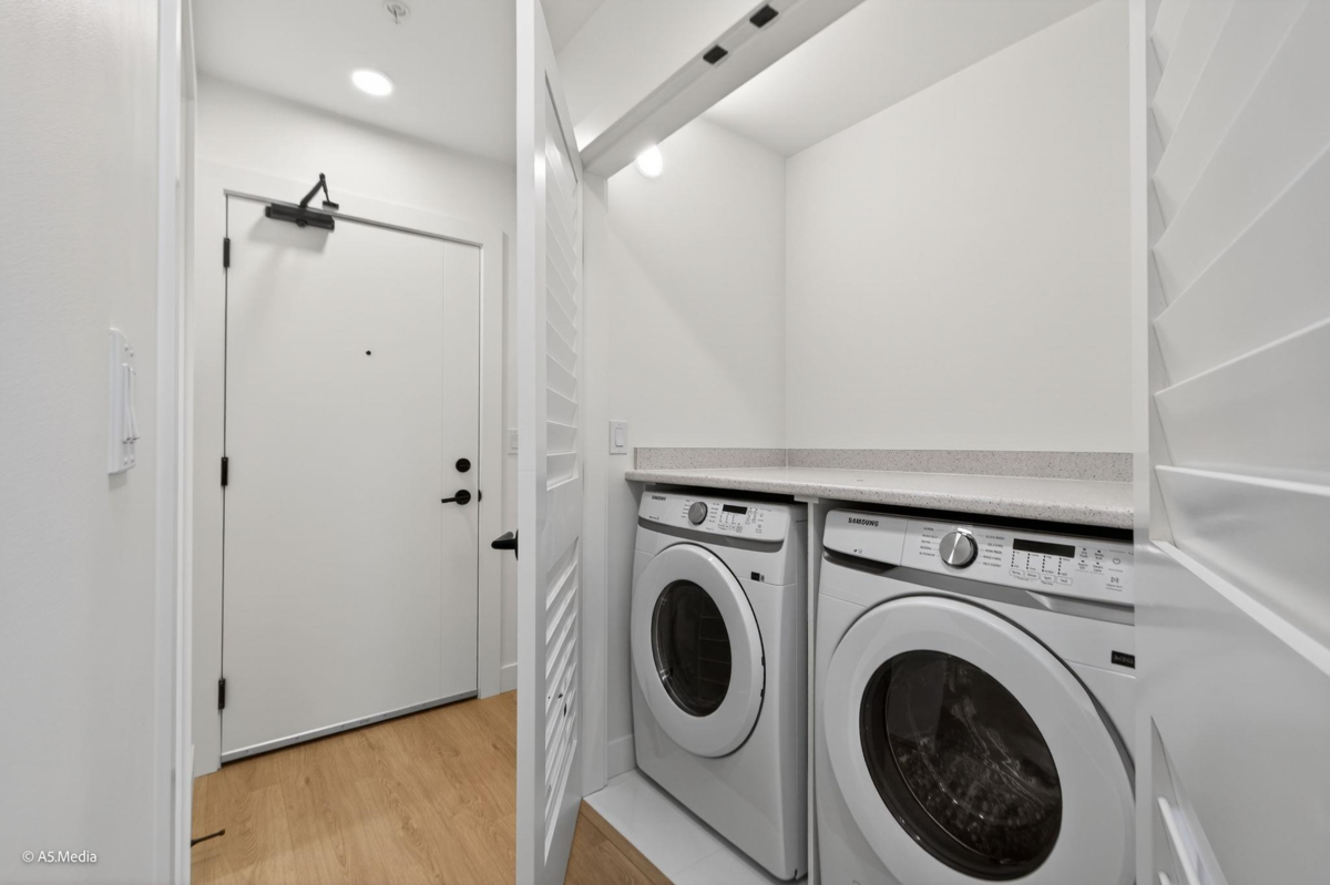 Welcome to Unit 504 at 19886 76 Ave, Langley! BRAND NEW CONCRETE BUILT 2-bedroom, 2-bathroom condo boasts 846sq. ft. of modern living in the heart of Willoughbys Hayer Town Centre. Featuring superior soundproofing, a stylish kitchen with quartz countertops and a gas range, and a luxurious spa-inspired bathroom, the unit is both practical and elegant w/ 95 sqft SOLARIUM! in-unit laundry NO GST applicable. Downstairs on commercial portion you will find new sushi restaurant, pizza shop and physio/gym ! Highlights include a versatile solarium, covered parking, and access to community amenities like a rooftop deck and outdoor spaces. Plus a stand-alone amenity building featuring lounges, games/party room, outdoor fire pits, garden & fenced dog park