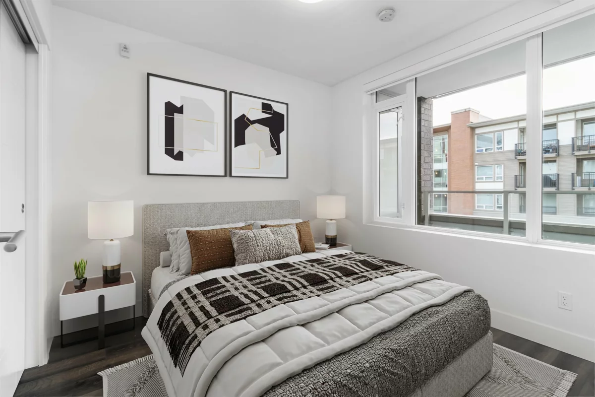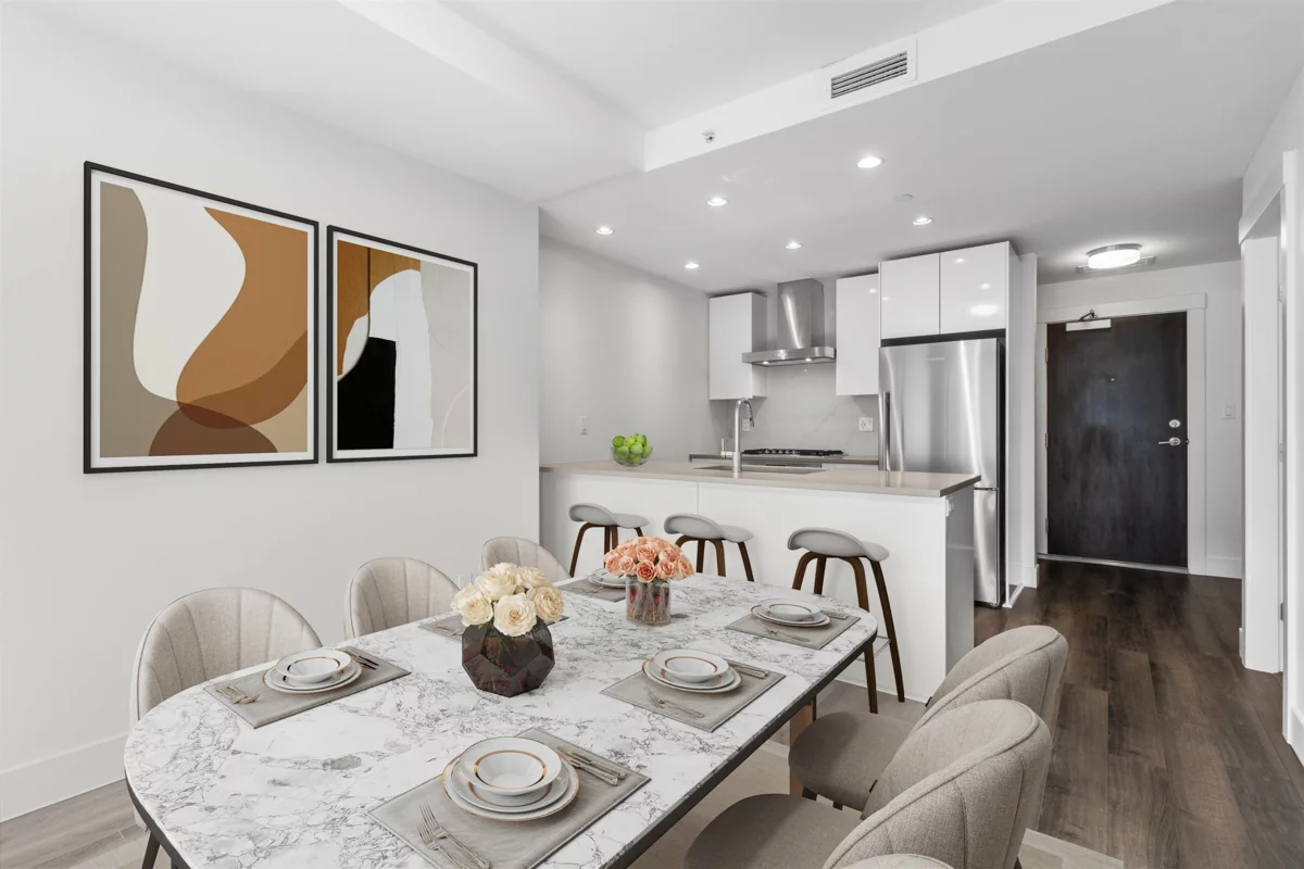 Welcome to Dahlia, a meticulously designed south-facing 1-bedroom + den concrete residence in the highly sought-after Ironwood neighborhood. Offering 635 sqft of bright and functional living space, this home features elegant white cabinetry, premium stone finishes, air conditioning, and stainless steel appliances. Residents enjoy access to exceptional amenities, including a state-of-the-art gym, recreation court, and party room. Conveniently situated near Ironwood Plaza, parks, and Highway 99, this location ensures effortless connectivity to Vancouver and YVR. Complete with a parking space, radiant bathroom floors, and the assurance of a New Home Warranty, this property presents an outstanding opportunity for discerning buyers.