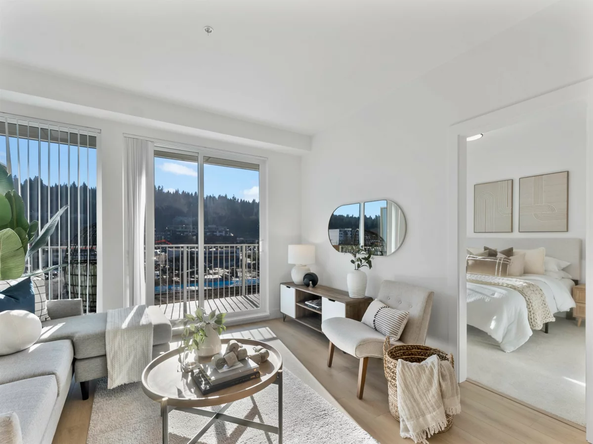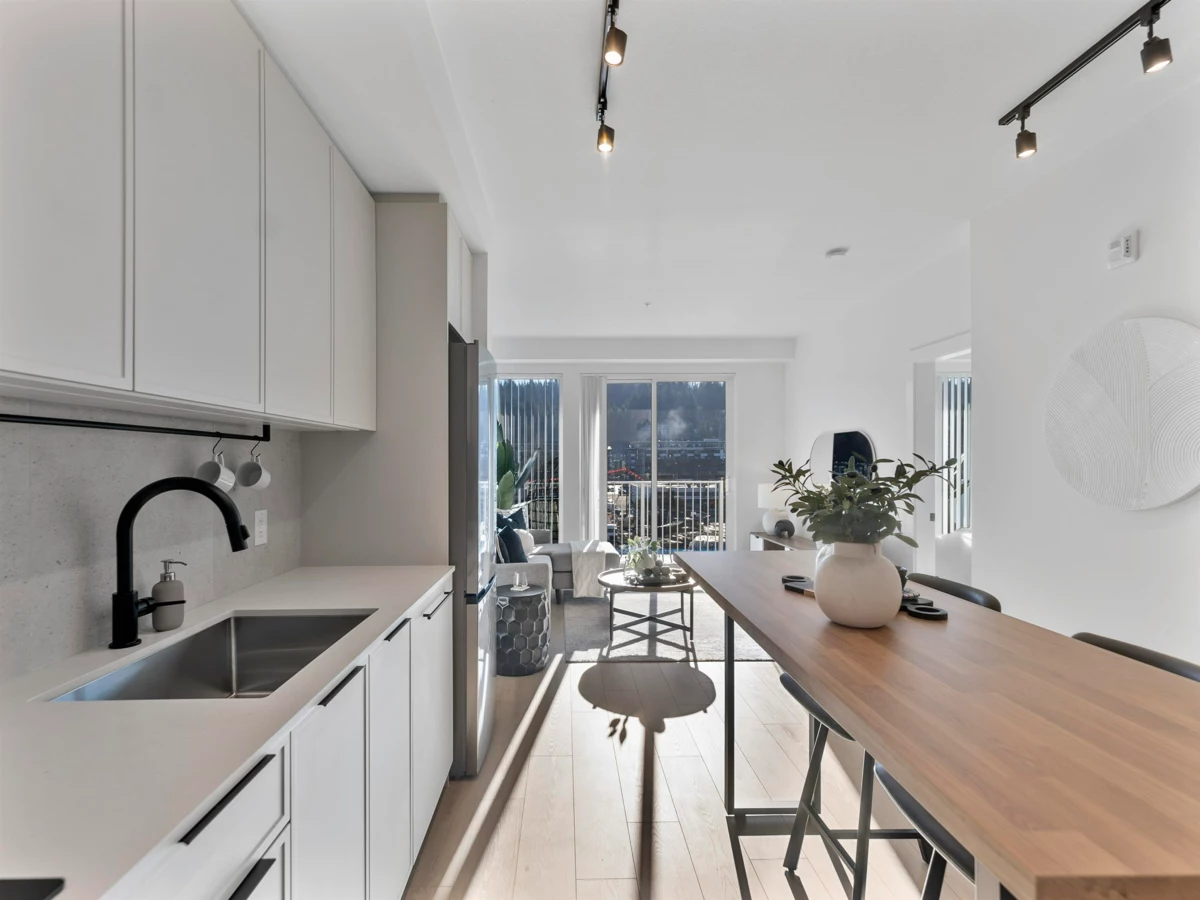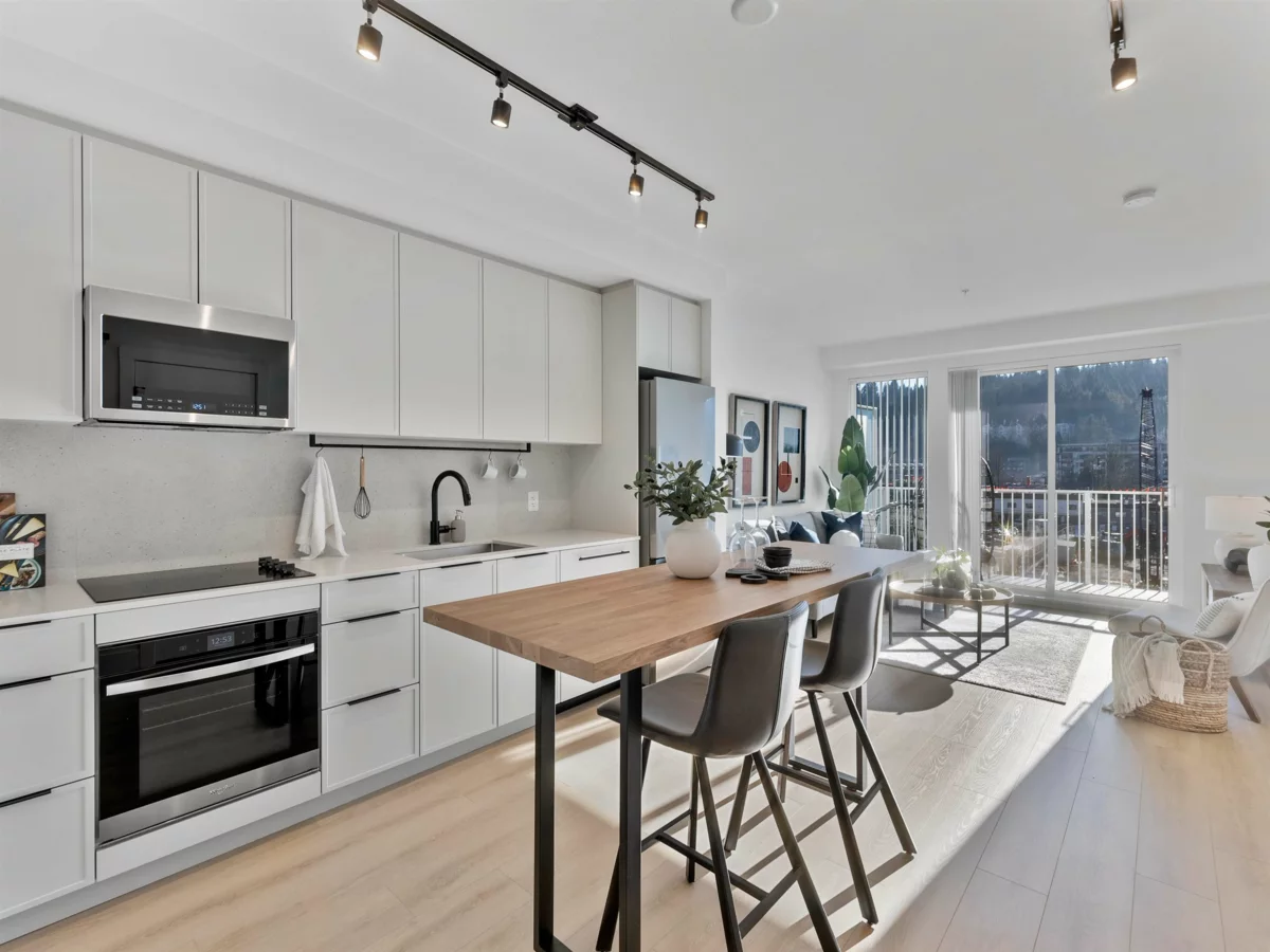 Live at the centre of Port Moody at Moody Yards by Mosaic. This exquisite, brand new, never-occupied 2 bedroom, 2 bathroom residence showcases a thoughtfully designed layout with expansive windows, refined contemporary finishes, and a private balcony. Ideal for professionals, couples, or discerning down-sizers seeking a sophisticated urban lifestyle surrounded by nature. Just steps to Rocky Point Park, Shoreline Trail, Brewery Row, cafes, and everyday conveniences. Walk to Moody Centre SkyTrain and West Coast Express for seamless commuting. Residents enjoy an elegant private courtyard with lush gardens, inviting seating areas, and beautifully designed social spaces created for connection and relaxation. Experience the most coveted community!