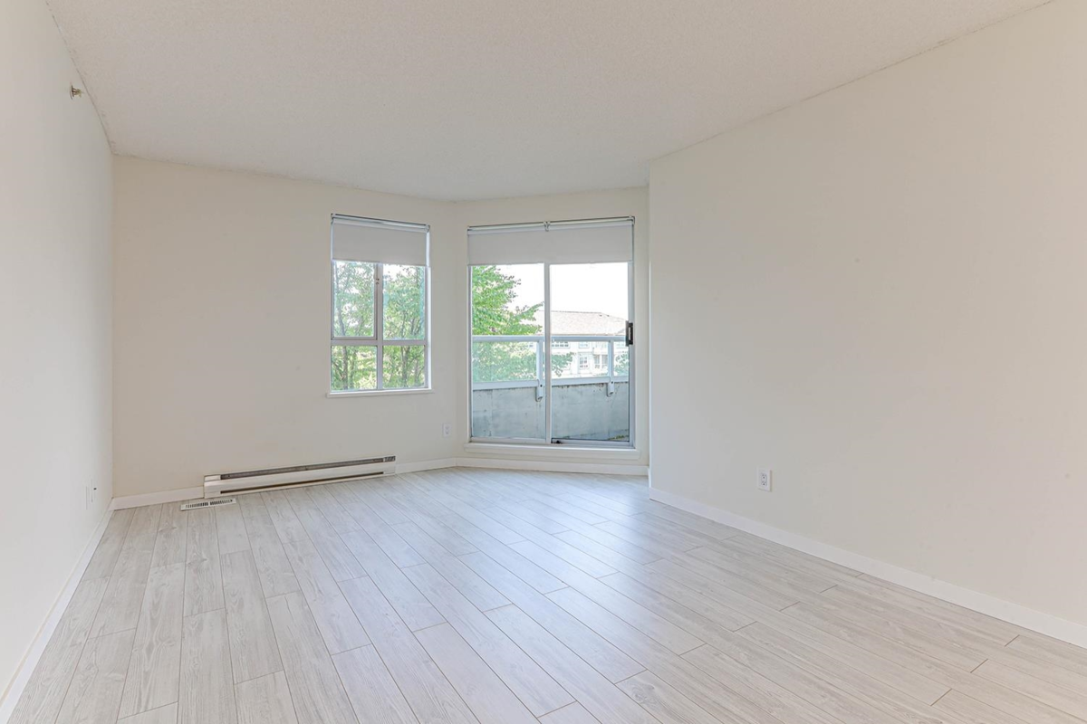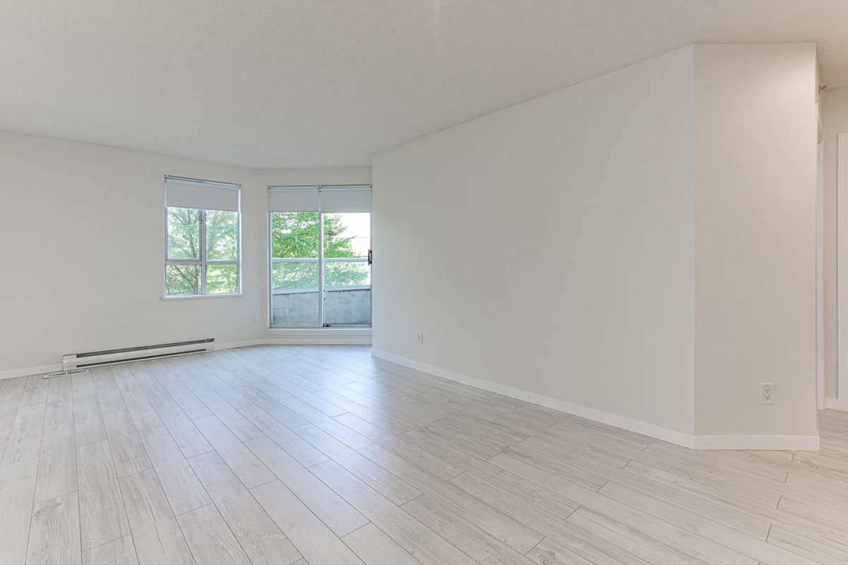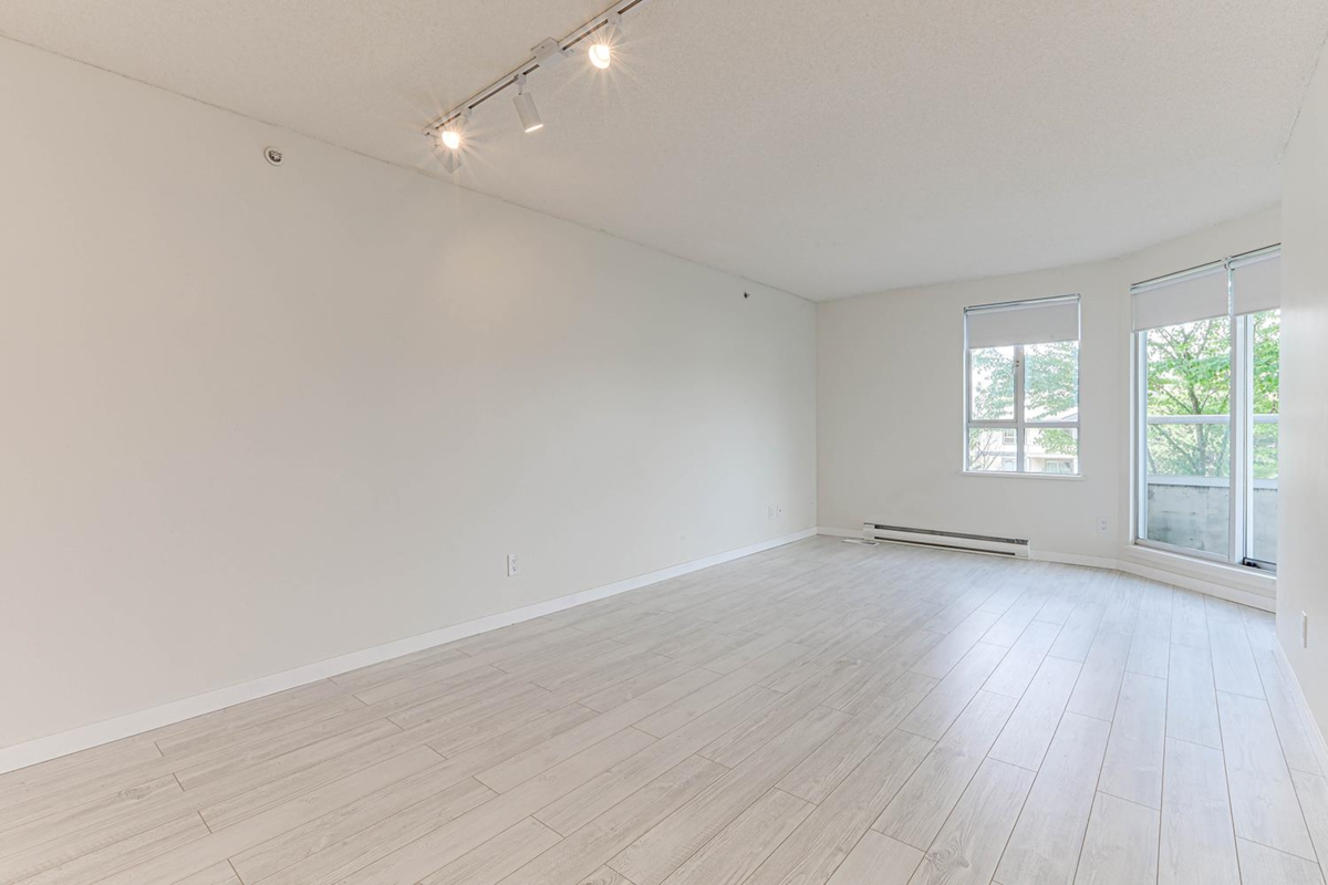 One of the largest 1 bedroom floor plans in the building. Renovated unit facing onto quiet inner courtyard. Updates include new laminate flooring, new kitchen counters, new stove and hood fan, new vanity, new tiolet, and vinyl flooring, new light fixtures, new paint. Mountain view balcony. Steps to Joyce Station, shops, school & park. Full size parking, large locker. OPEN CANCELED.