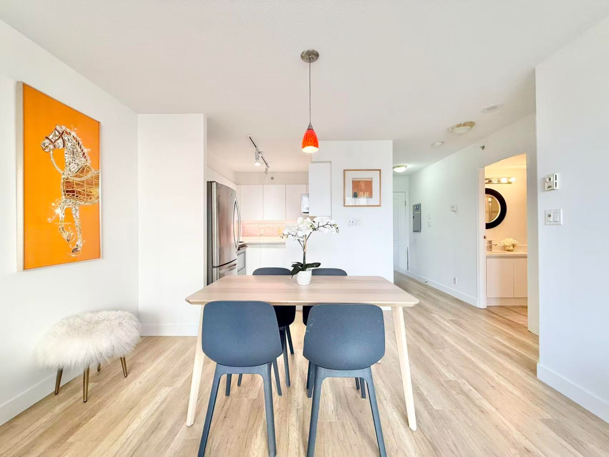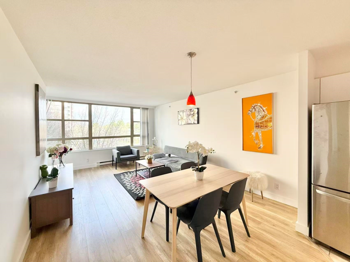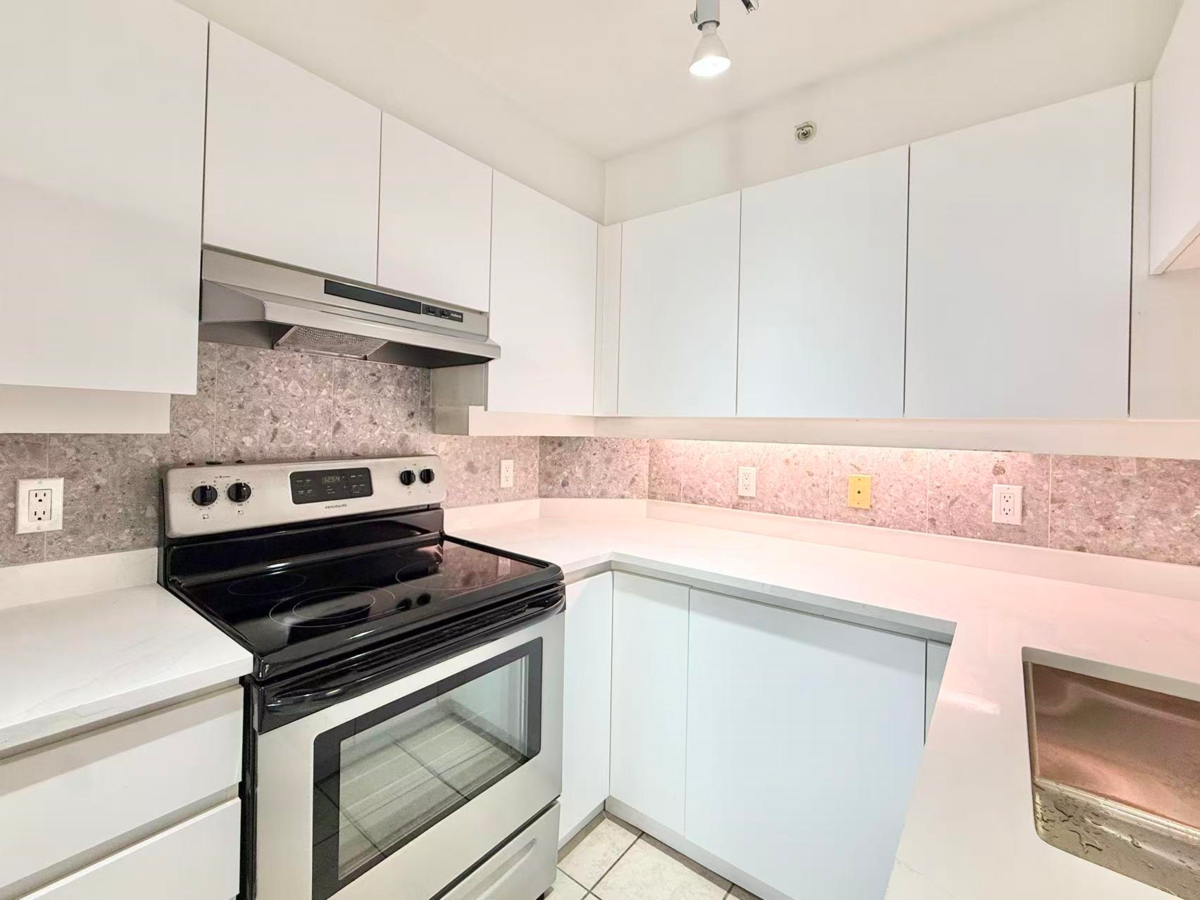 Rosario Garden immaculate 1 bdrm North facing mountain view condo. Functional layout with brand new painting, laminate floor, cabinet and appliances. Very central location, steps to shopping, schools, future RAV and public transits. a must see