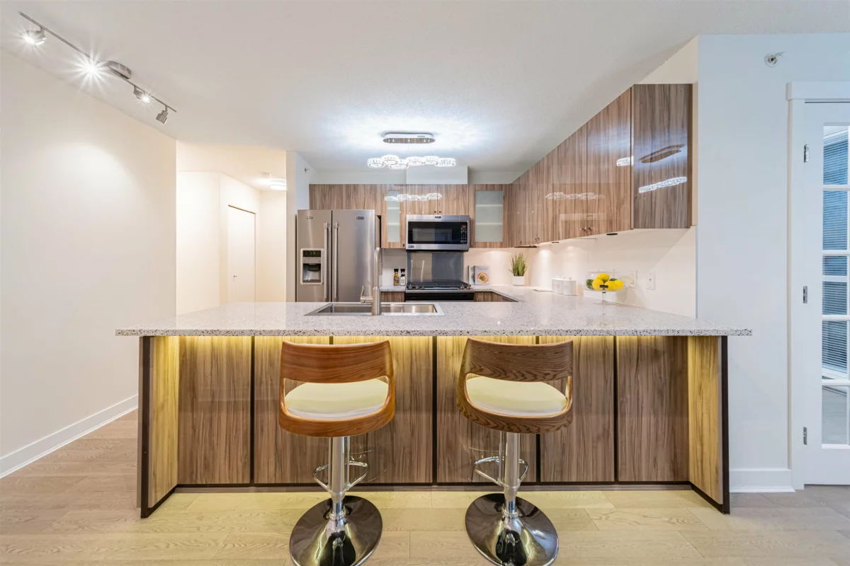 Welcome to Oceanwalk! This exceptional corner unit boasts two balconies and is connveniently located in the heart of Richmond. Completely renovated in 2021, this home features a modern kitchen with top-quality cabinets, countertops, and famous-brand appliances. The interior is adorned with fashionable Multi-Color Crystal Lights, engineered wood flooring, plush carpeting, and stylish blinds. You'll also enjoy two side-by-side parking spaces and a locker. The amenities include a 20,000 sq ft rooftop garden with a 9-hole putting green, a relaxing hot tub, a well-equipped gym, guest suites for visitors, and a media room for entertainment. Furthermore, this unit is ideally within walking distance of the SkyTrain, bus station, Rona, T&T supermarket, and Lansdowne Mall.OH: DEC 30th, SAT, 2-4pm