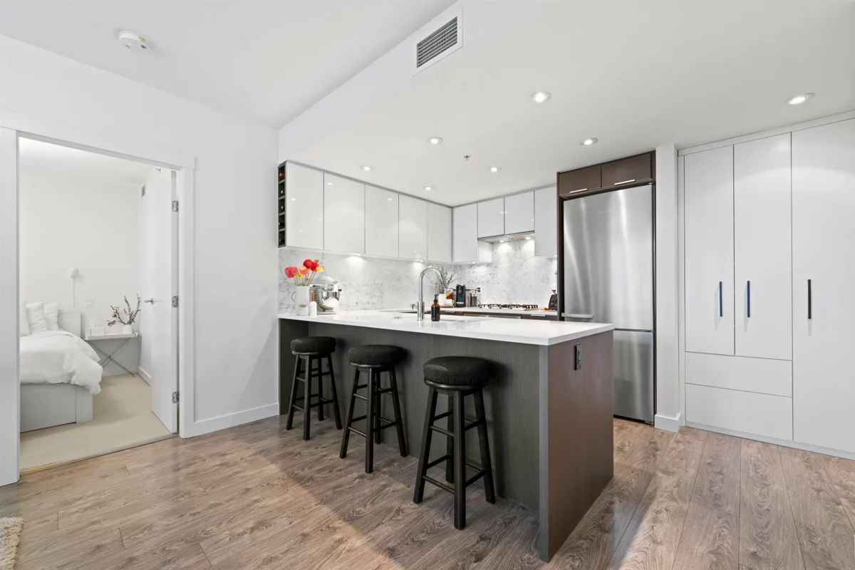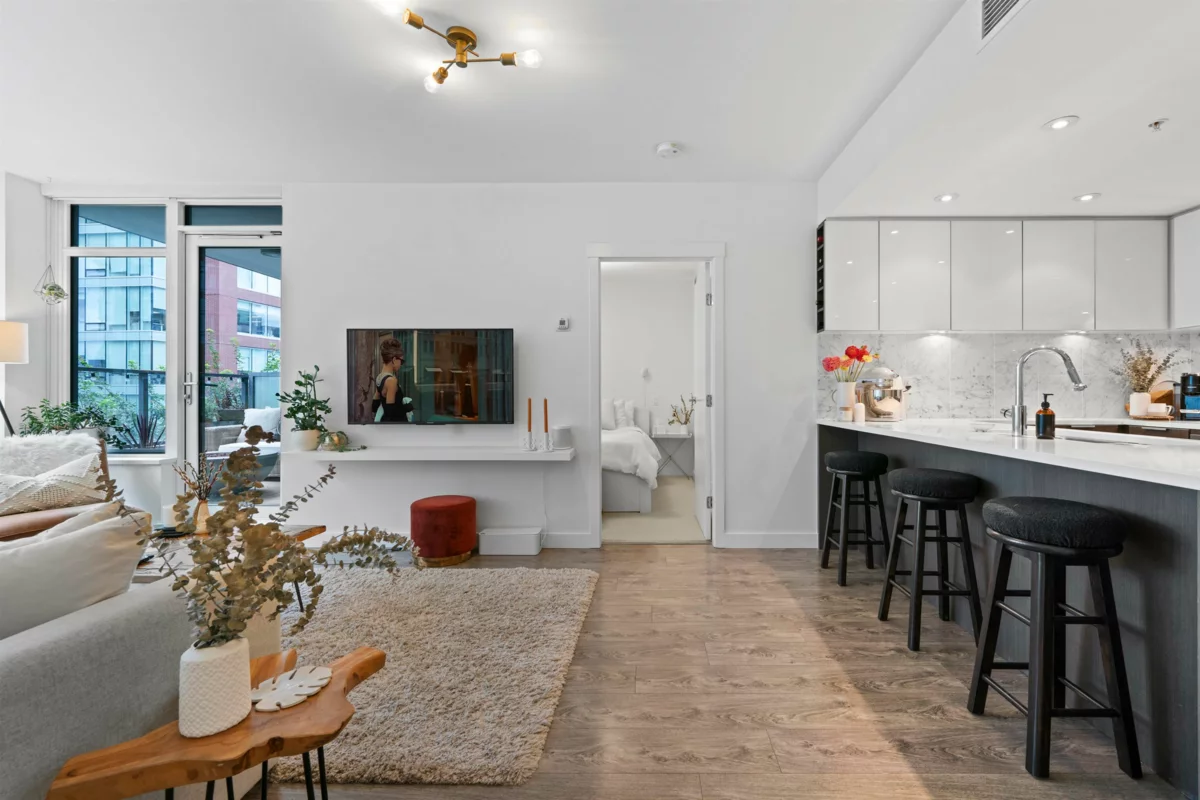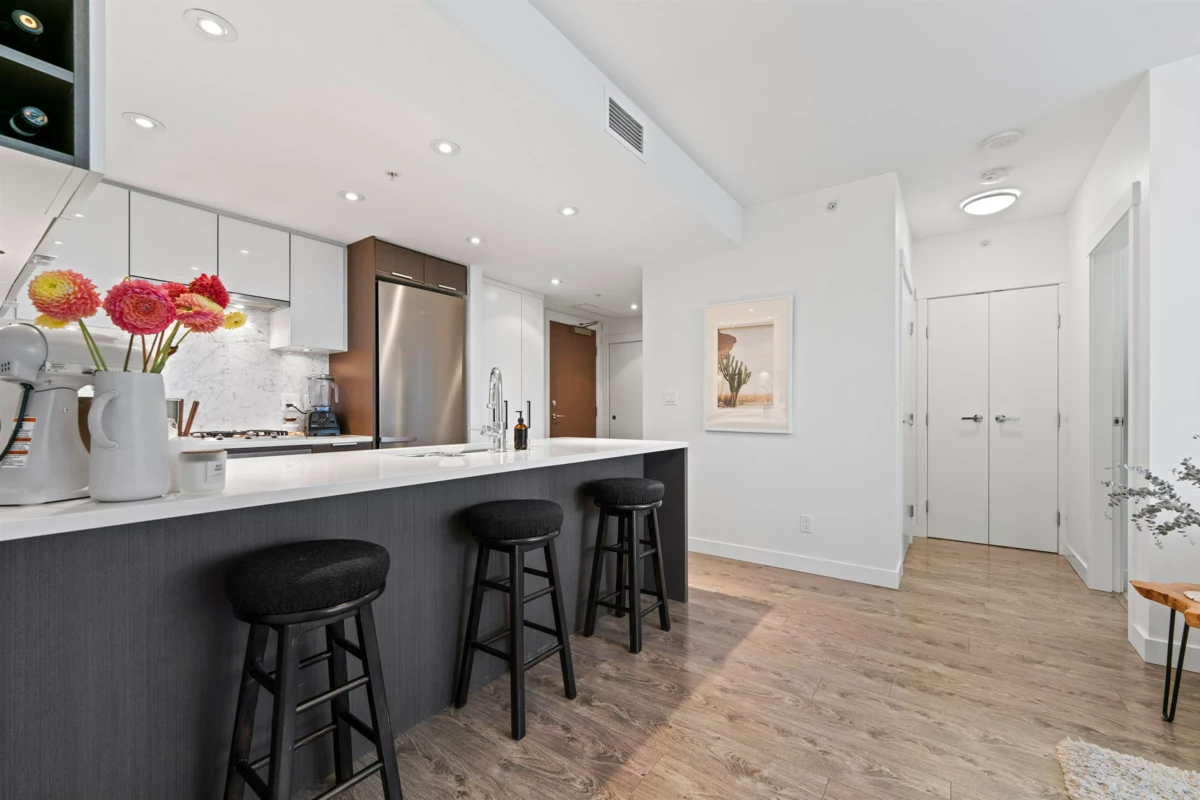 Welcome to LIDO by Bosa, a stunning 2-bedroom, 2-bathroom condo perfectly located on the edge of Olympic Village. Just steps from transit, restaurants, the seawall, and shopping, this home offers an unbeatable blend of convenience and lifestyle. Inside, enjoy modern comforts like air conditioning, a gas cooktop, and professionally installed closet organizers. The building boasts luxury amenities such as a swimming pool, gym, EV chargers at every parking stall, a pet wash station, and concierge service. This unit also includes a large next-to-unit storage locker and one parking space, making it the ultimate urban retreat.