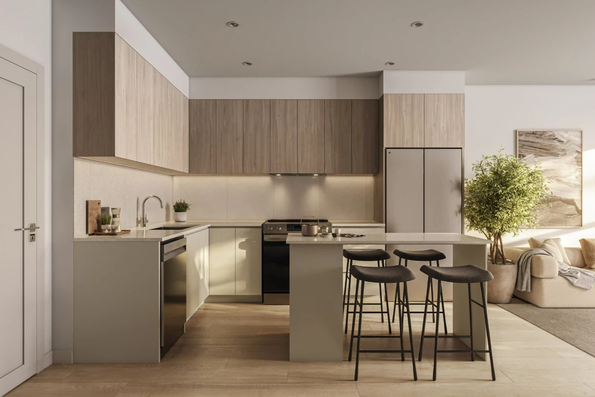 Welcome to The Merchant, by Wesmont Homes Ltd. This boutique collection of 136 modern condominiums is centrally located in rapidly growing Langley City. This standout one bedroom, one bath unit maximizes livability & value, ideal for the first time buyer or investor. This home is located within walking distance of the future SkyTrain station and just a short drive to Hwy 10, offering easy access to schools for all ages and several trendy restaurants. It features a SS appliance package, 1 storage locker & 1 designated parking stall. Amenities include a social lounge with full kitchen, a fully equipped workout facility, and a lushly landscaped 3,776 sf courtyard with built-in BBQ,firepit,children's playground,and half-court basketball. Anticipated completion end of 2026 - Call today!