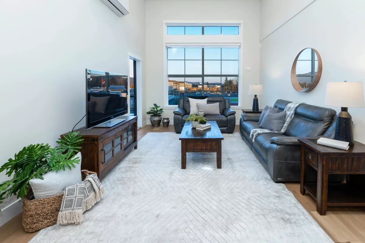Luxurious Brickwater building 2 BDRM 2 BTHRM PENTHOUSE CORNER unit exudes elegance & sophistication! Revel in 13' ceilings, GORGEOUS Chef's kitchen w/ quartz counters, S/S appliances w/ gas range, ample cupboards, sit-up bar perfect for entertaining! Captivate guests w/ an INCREDIBLE open FLOORPLAN, engineered HW, abundant natural light, captivating mountain views! Retreat to the Mstr BDRM oasis, boasting a lavish walk-in shower, lovely WI closet, dual sinks for added luxury. Enjoy comfort year-round w/ ductless A/C & heating! Nestled in the HEART of Maple Ridge, this GEM offers proximity to shopping, dining, entertainment & transit! BONUS 2 secure U/G Parking plus Private Locker! Take advantage of the Assumable Mortgage at 4.8% Option! 2 Pets OK! Your dream lifestyle awaits!