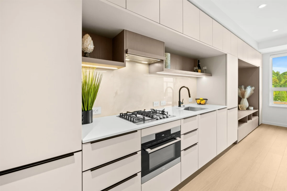 Brand new 1 bedroom home at Hue by Marcon with spectacular mountain and Inlet views. Ideally positioned at the end of Barnet Highway, this home offers quick access to downtown Vancouver while being surrounded by Port Moody’s parks, trails, and waterfront. Bright and modern interior with floor-to-ceiling windows, Italian cabinetry, stone counters, high-end appliances, and an impressive amount of in-suite storage. A built-in desk provides the perfect work-from-home solution, while an oversized locker adds even more space for outdoor gear. Residents enjoy premium amenities including a rooftop terrace with sweeping views, fitness centre, co-working lounge, garden plots, kids play area, dog wash, and EV-ready parking,all backed by 2-5-10 Home Warranty for peace of mind. OH: Saturday 12:30-2: 30