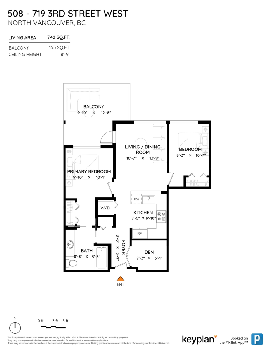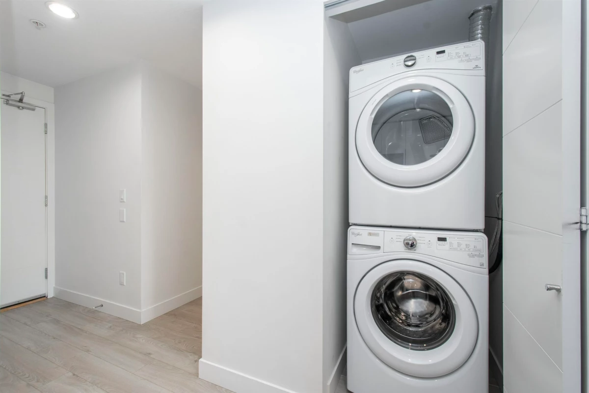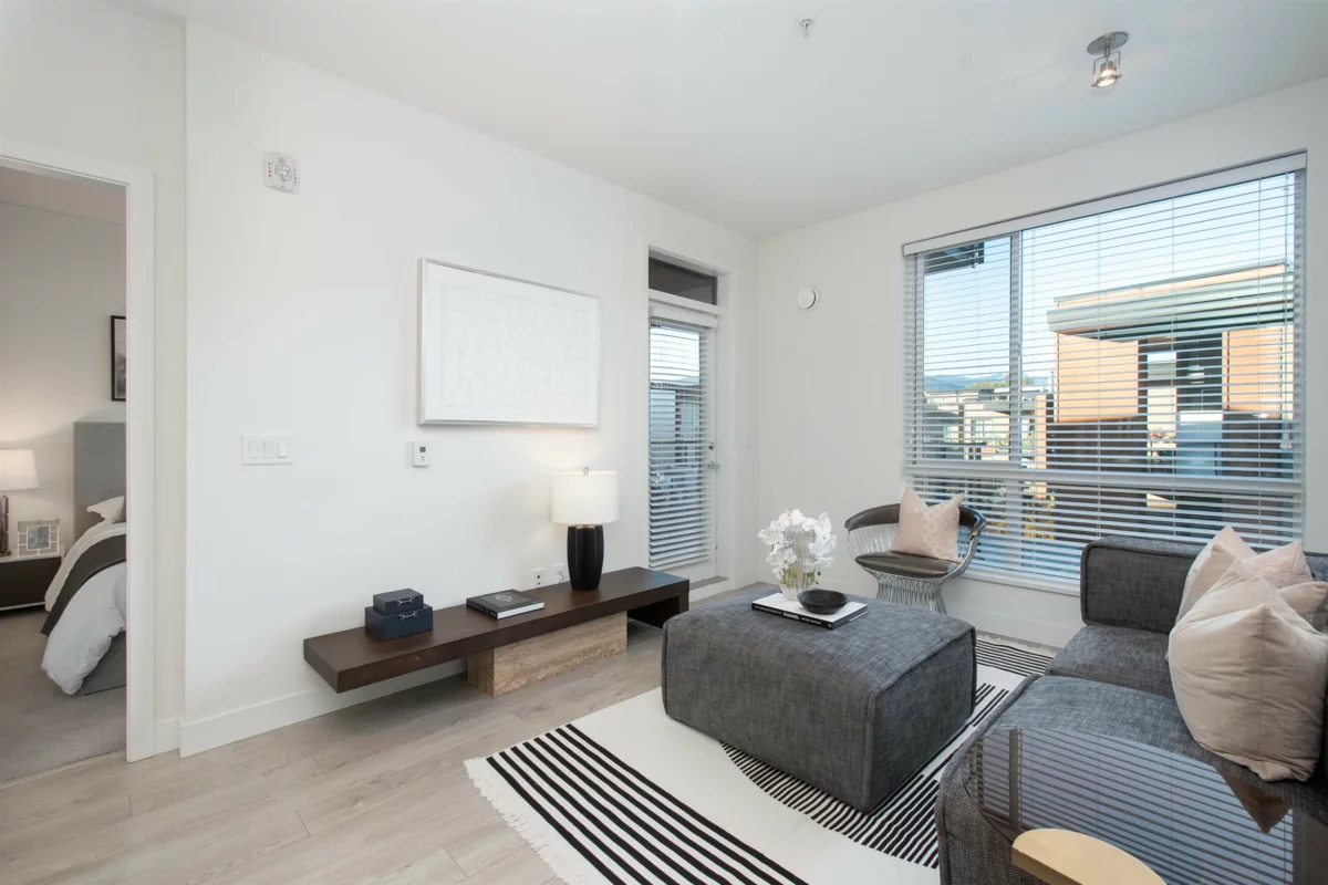 Don't miss this bright and spacious 2 bed + large den home in The Shore by Adera! This like-new unit features a comfortable and efficient layout that feels spacious with separated bedrooms, a large wheelchair accessible bathroom, and a bright white kitchen with quartz counters and SS appliances. Relax on the over sized balcony overlooking the quiet Piazza with partial mountain view. The den has its own ventilation and doors - ideal as a nursery or office. Both bedrooms have exterior windows facing the Piazza. Top-notch amenities include a gym, yoga studio, playground, and bike storage. Pet & rental friendly strata. Includes 1 parking & 1 locker. Close to shops, transit, schools, Spirit Trail, Lonsdale Quay & Mosquito Creek. Easy to show.