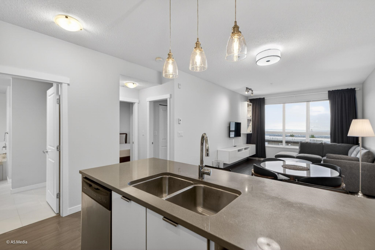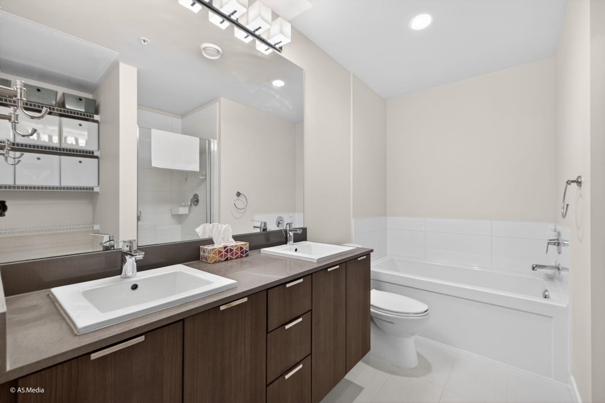 VERITAS! Built by reputable developer Polygon at SFU where nature, community & convenience meets. This South-facing Top-floor 2 Bed home offers a peaceful retreat on Burnaby Mountain, surrounded by forest, trails & fresh air, yet steps to daily essentials. Bright open views from Mount Baker to Vancouver Island through large windows that fill the home w/natural light. Thoughtful layout features heated floors, a spacious bathroom w/double sinks, walk-in shower & soaker tub, in-suite laundry & private balcony ideal for relaxing. Includes 1 parking & 1 storage, access to a gym & community room in a well-maintained building. Walk to SFU, transit, Nester's Market & easy access to shopping, Costco, city amenities & nature. Furnished included & Move in Ready. Ideal home or investment opportunity