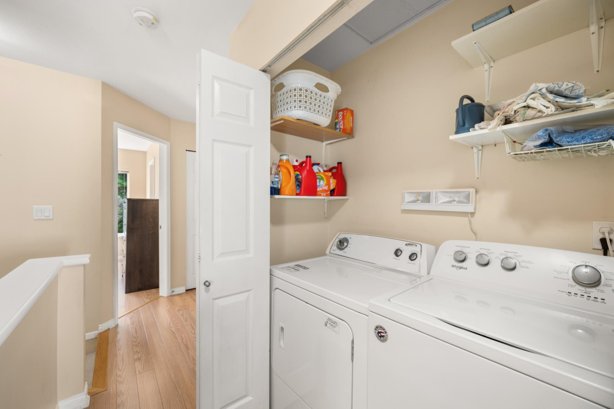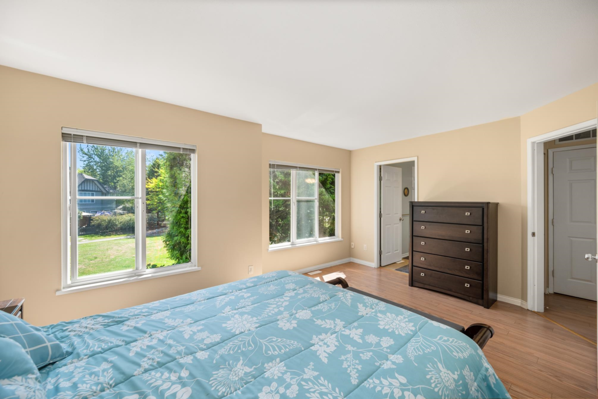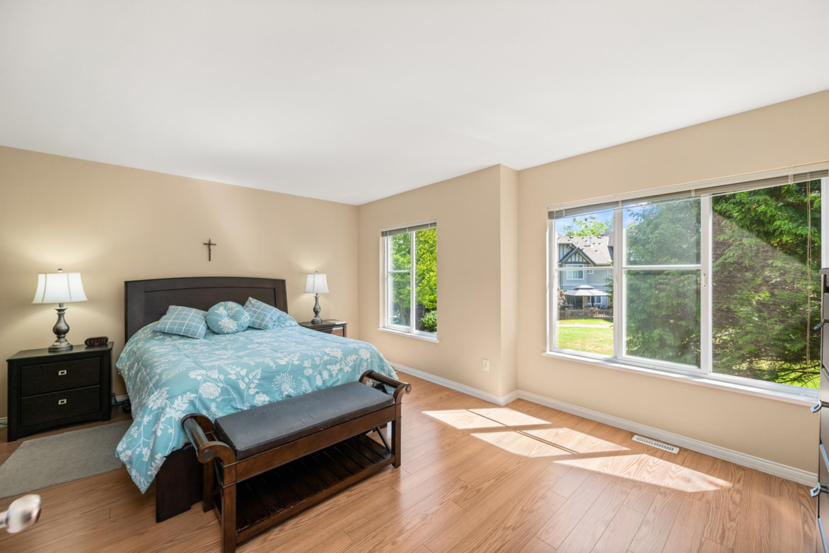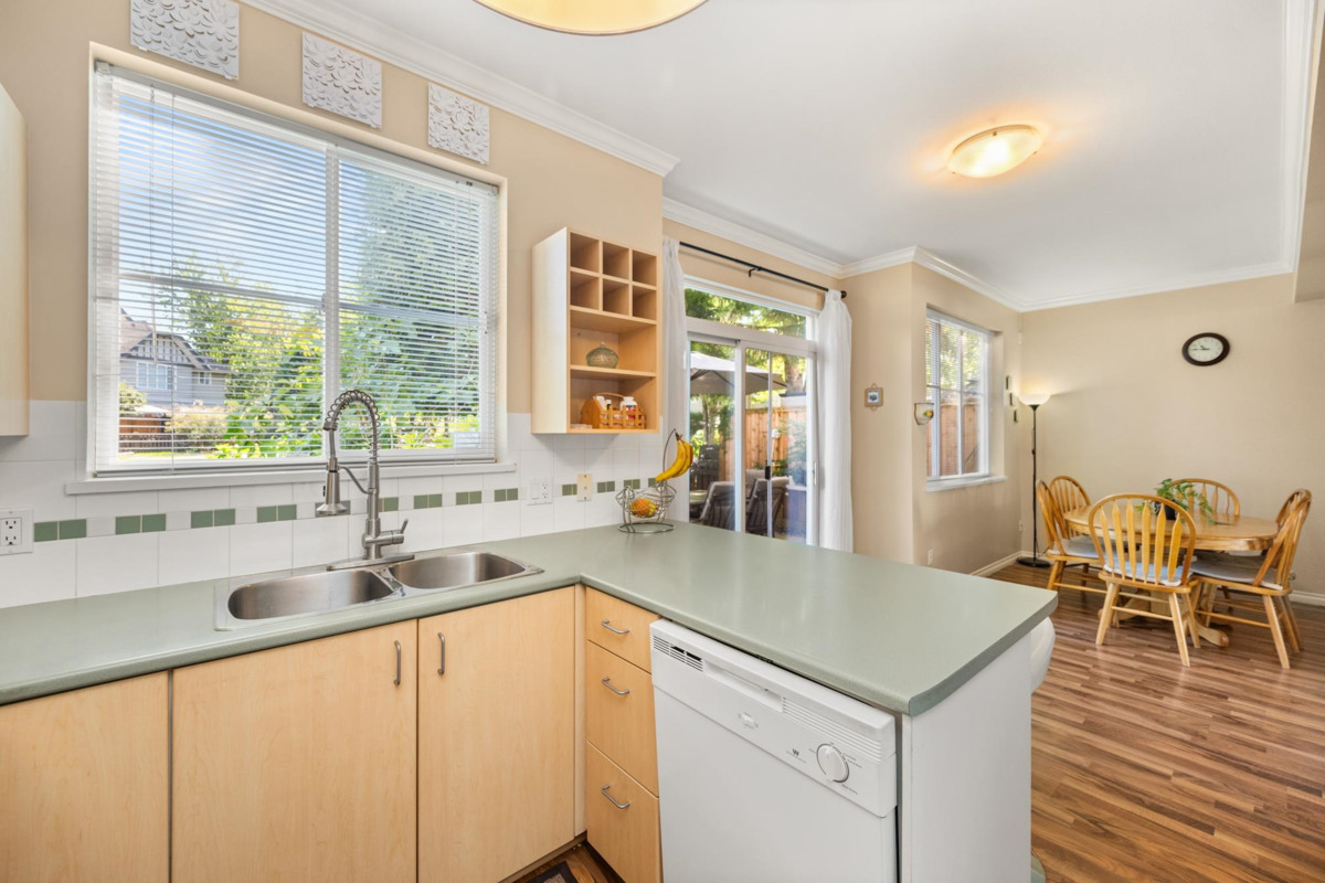 Welcome to Rosebury Lane. This quiet and fabulous end unit offers 3 large bdrms, 3 baths, a garage plus driveway parking, and backs onto peaceful greenspace. Enjoy an extra lrg yard and patio perfect for kids, pets, gardening, and entertaining.The upper level features 3 spacious bedrooms and 2 full bathrooms including a large primary suite with a walk in closet and plenty of storage. The main flr includes a convenient powder room, and 9 ft ceilings that create a bright open feel. The kitchen offers a roomy dining area with sliding doors leading directly to the patio. This family friendly complex ideally located close to schools, parks, shopping, transit, and the future SkyTrain. Roofs are approx 7 years, fencing has been recently painted, brand new hot water tank. Open House Sat 2-4pm