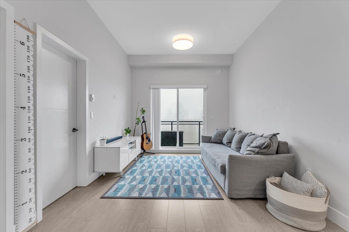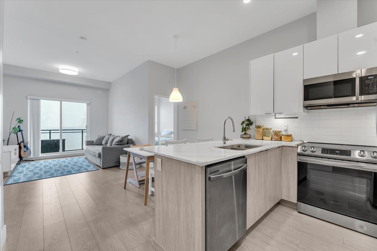 This is an amazing PENTHOUSE LEVEL unit with soaring 10-14 ft. ceilings. This spacious 2-bed, 2-bath condo has a full size den (almost third bedroom). The open-concept layout connects the living, dining, and kitchen areas, featuring stainless steel appliances, granite countertops, and in-suite laundry. Enjoy sound-limiting walls, 1 parking spot, and amenities featuring a fitness centre, yoga room, meeting room, study room, and a party lounge. Conveniently located near Willowbrook Mall, Costco, future Skytrain, and more! Open house: Saturday March 8th 2-4pm