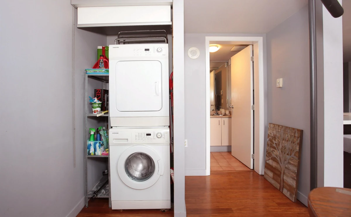 A charming loft in the heart of Gastown. This gorgeous loft offers soaring 16' ceilings, tons of natural light from its floor to ceiling windows, 2 flex spaces great for storage, bamboo flooring, in suite laundry, full bathroom, updated kitchen and Juliet balcony. Comes with 1 secured parking and plenty of additional visitor stalls. Two pets and rentals are welcome. Open House Sat Jan 24th 11am to 1pm