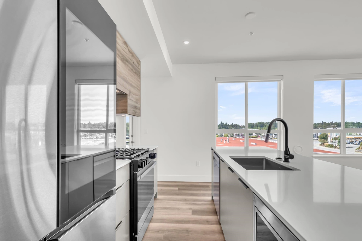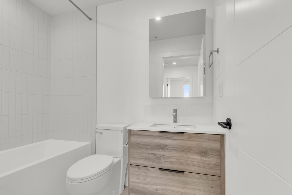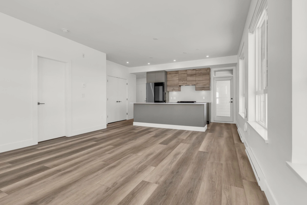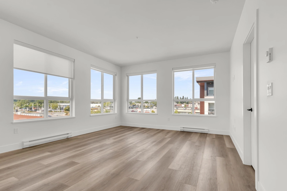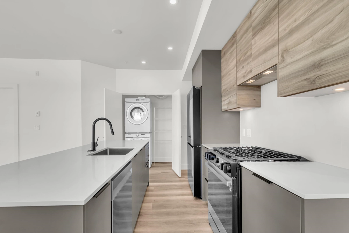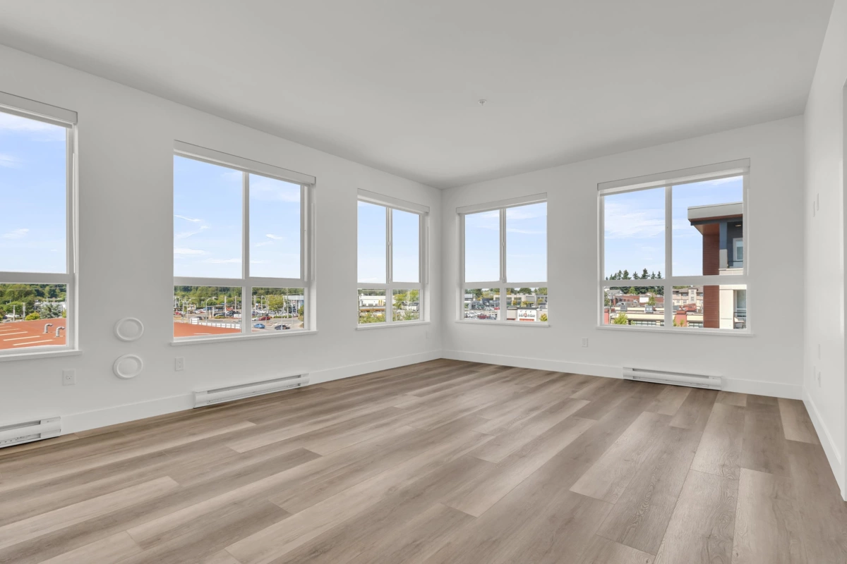 Top-Floor Corner Gem at Highstreet Village! This brand-new CORNER 5th-floor 2-bed, 2-bath home puts you above it all in Abbotsford’s most talked-about new community. With windows wrapping around the living and kitchen area, you’ll love the bright, open feel every day. The modern kitchen shines with stainless steel appliances, a gas stove, touchscreen fridge, quartz counters, and a big island with sink—perfect for cooking and entertaining. The funcitonal layout offers bedroom separation for privacy and wide plank floors for style. Step out to your covered balcony for fresh air and an open view. Comes with parking, storage, and access to awesome amenities like a gym and party room. Walk to shopping, dining, and be on Highway 1 in minutes. Move-in ready with quick possession available!