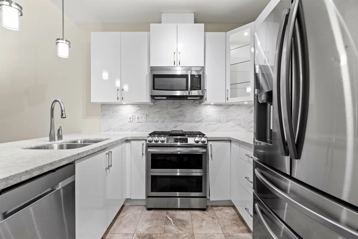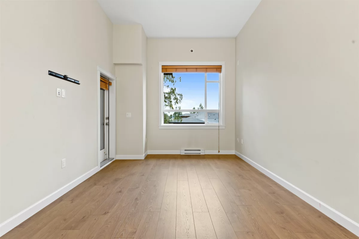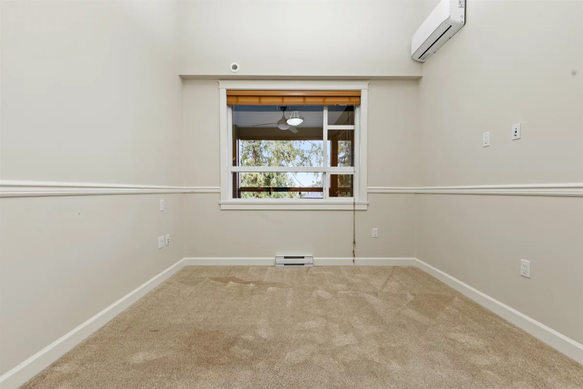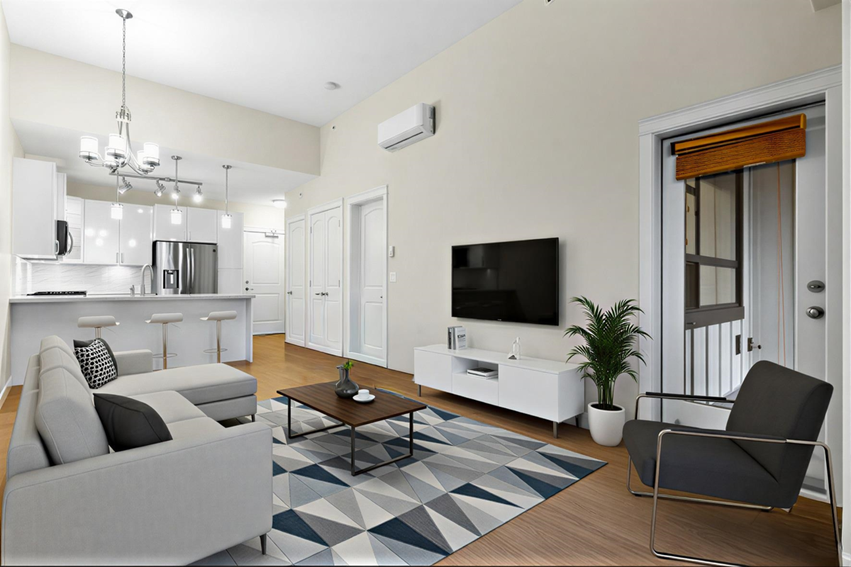 FOREST RIDGE by Quadra Homes. This stylish 1 bed, 1 bath condo includes a 134 sq. ft. solarium with retractable glass and BBQ gas hookup for year-round use. Features a gourmet kitchen with 5-burner gas range, double oven, quartz countertops, and white shaker cabinets, plus 12ft high ceilings throughout. Extras include A/C, energy-efficient heat pump, heated bathroom floors, frameless glass shower, 2 underground parking stalls and a private roll up storage garage with electric outlet capable for electric car charging. Minutes to Crescent Beach, Hwy 99, King George Blvd, and shopping - perfect for comfortable coastal living with urban convenience.