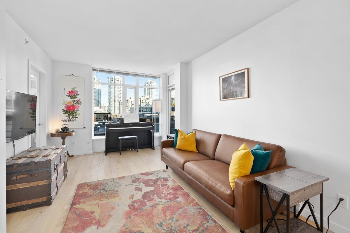 Nestled in the heart of Yaletown is this gorgeous 2 bed condo w/2 ensuite bathrooms, huge in-suite storage/den plus an office! Large east facing windows brighten the living space and enhance the view over beautiful brick heritage buildings. Home chefs will love the kitchen outfitted with high end SS appliances including a gas stove and dishwasher drawer. Enjoy the oversized primary bedroom and ensuite with 2 sinks, a shower and a soaker tub. Covered balcony for your BBQ, in-suite laundry, pet and rental friendly building, bike lockers, gym and rooftop garden with a kids playground and pet friendly area! Located in the sought after Homer & Helmcken, a concrete building on a tree-lined street with eateries, boutiques and only a few blocks to the Canada Line and Seawall!