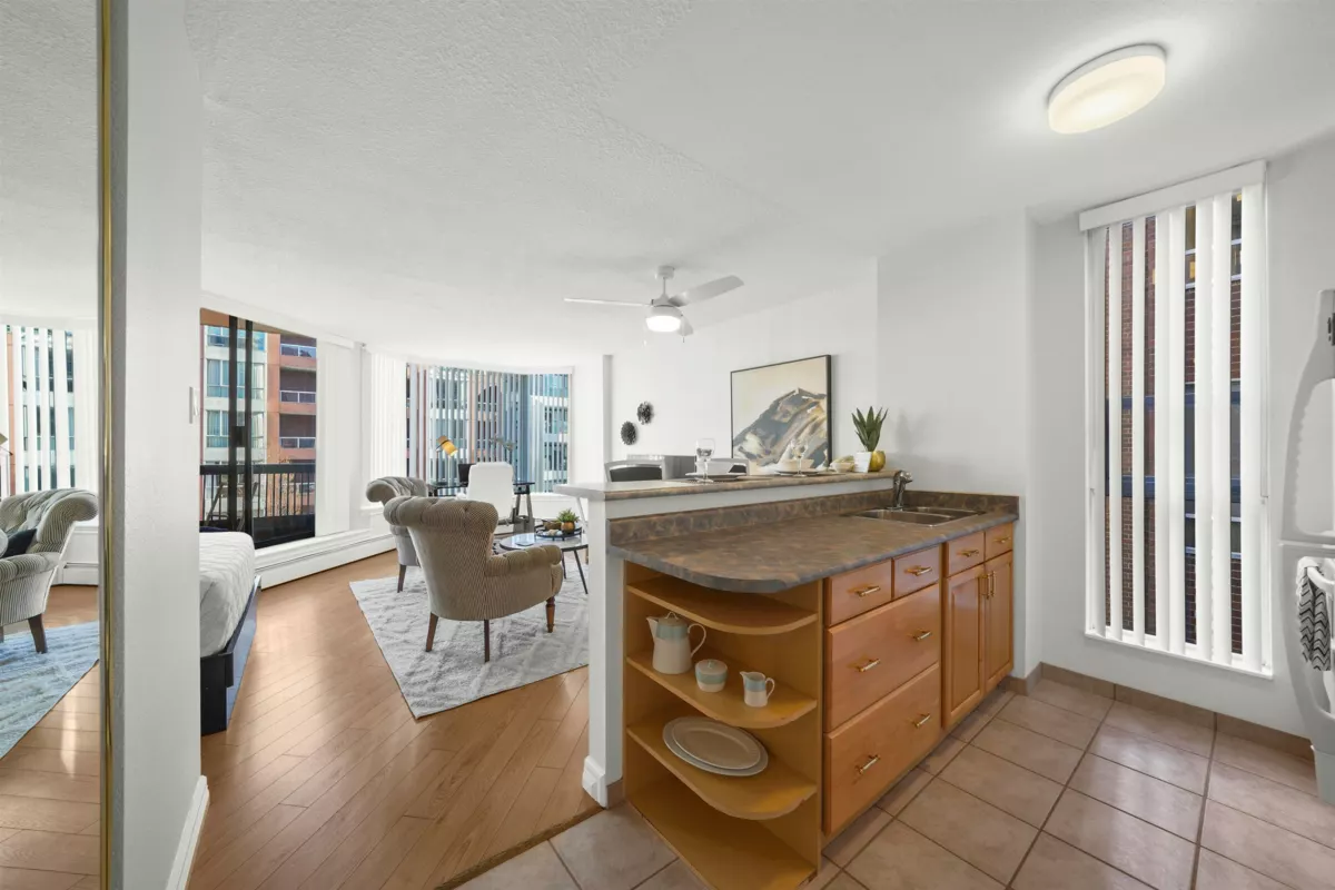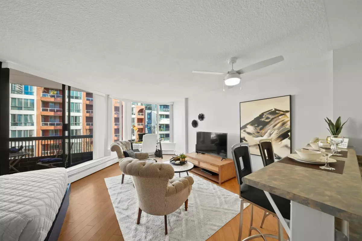 Nestled in the heart of vibrant downtown Vancouver, this freshly painted charming studio apartment offers the perfect blend of urban living and comfort. This sites prime location has huge future development potential. Its stylish space provides residents with easy access to the city's bustling streets, shopping, dining, entertainment, and public transportation. The rooftop deck and party room boasts both city & water views perfect for hosting or relaxing. Parking available from strata to rent for $65/month. Pets and rentals allowed with restrictions. This gem won’t last long, schedule your viewing now!