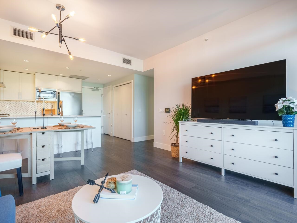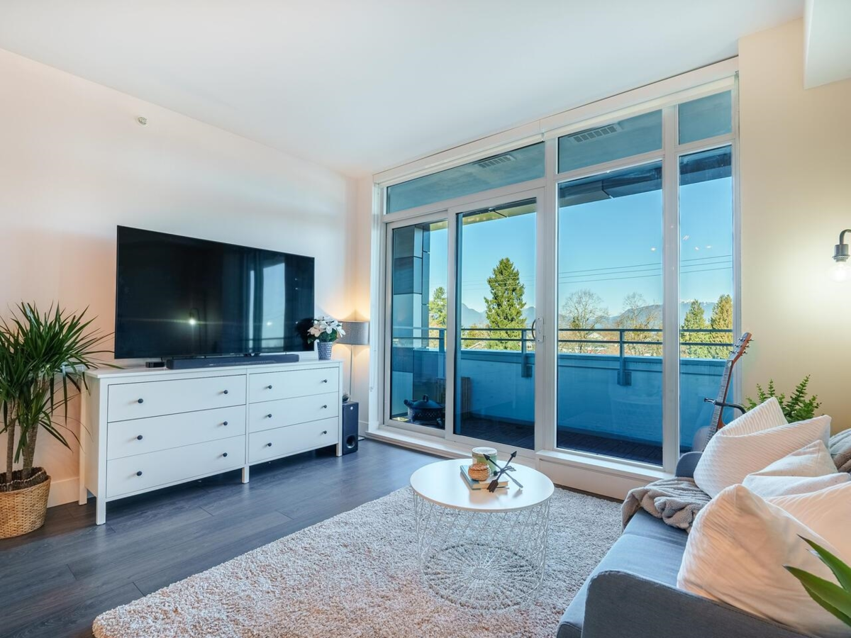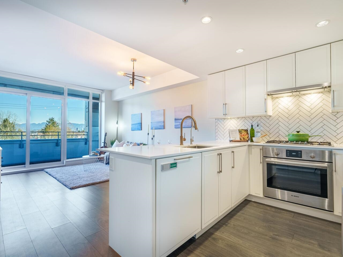 PRICED UNDER ASSESSED VALUE!! Spacious & Bright ON THE QUIET SIDE of the building! Great Layout - 2 Bedroom and Den with in-suite laundry. Contemporary open kitchen with Bosch and Blomberg appliances and breakfast bar. Bright living space opens up to a large covered balcony with a beautiful view of the city and North Shore mountains. The Windsor by Amani is a concrete building, just 3 years old with AIR CONDITIONING, rooftop courtyard and BBQ, party room, and fully equipped fitness facility - parking too. Just east of Nanaimo, the central location is an easy walk to skytrain, shops, restaurants, parks, and John Norquay Elementary. Nothing to do but move right in! OPEN HOUSE CANCELLED