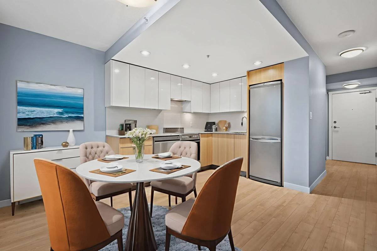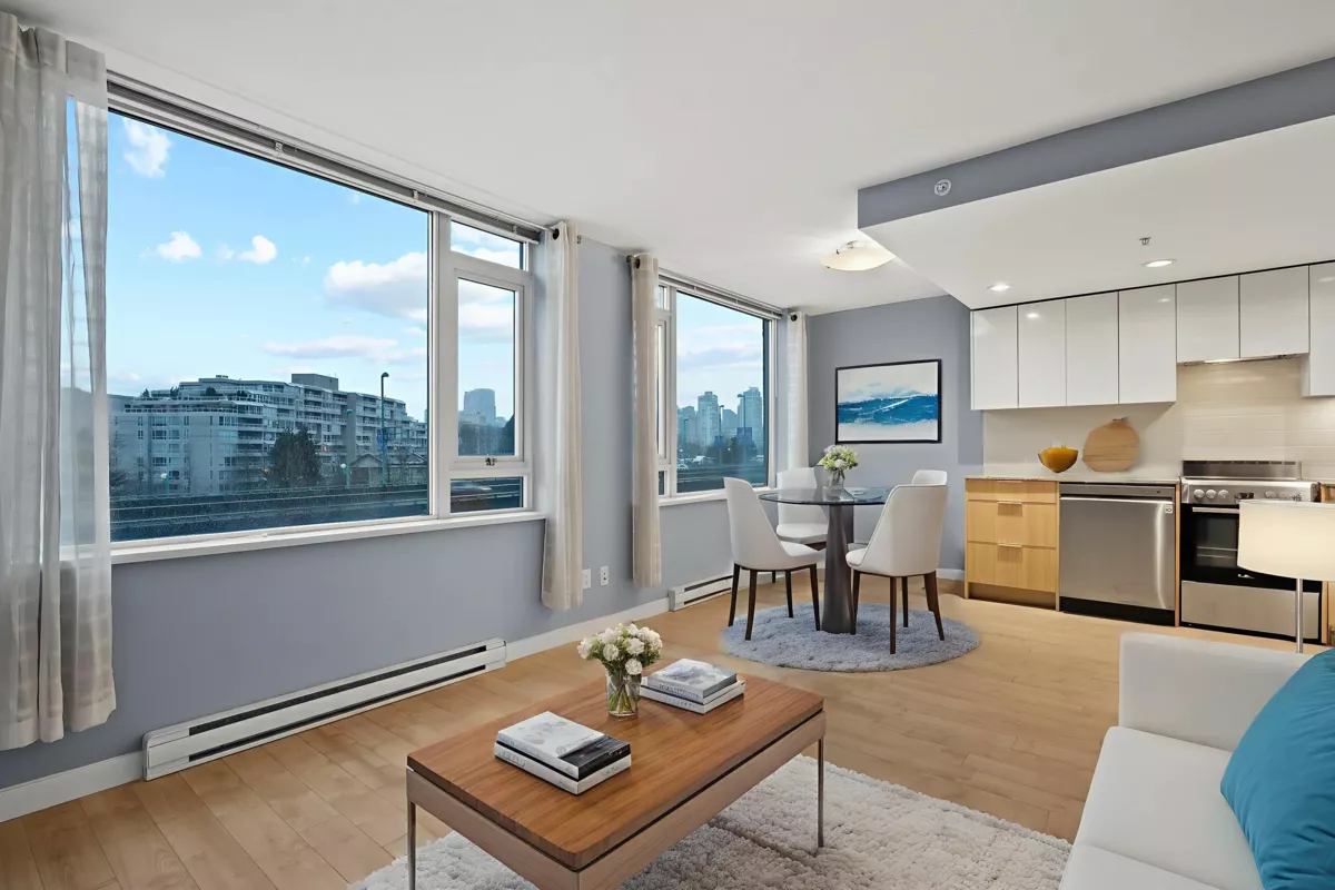 An opportunity to live 1 min walk from the Canada Line and steps from the Seawall for under 500k! 1 parking and 1 external storage included with this well laid out, bright studio home. Concrete built with features like wide plank flooring, quartz counters, slow-close drawers and a thoughtfully designed floor plan with room for a dining table and work station. Newly painted. Different options to have a daybed, dedicated bed or Murphy. Bonus building amenities: Amazing concierge service, party room, yoga studio, bike storage, gym. No car needed as you have Urban fare, Whole foods, plenty of restaurants and shopping at your doorstep. False Creek living at its finest! (Furnished photos virtually staged). Come see us at our OPEN HOUSE SUN FEB 1st 2-4pm