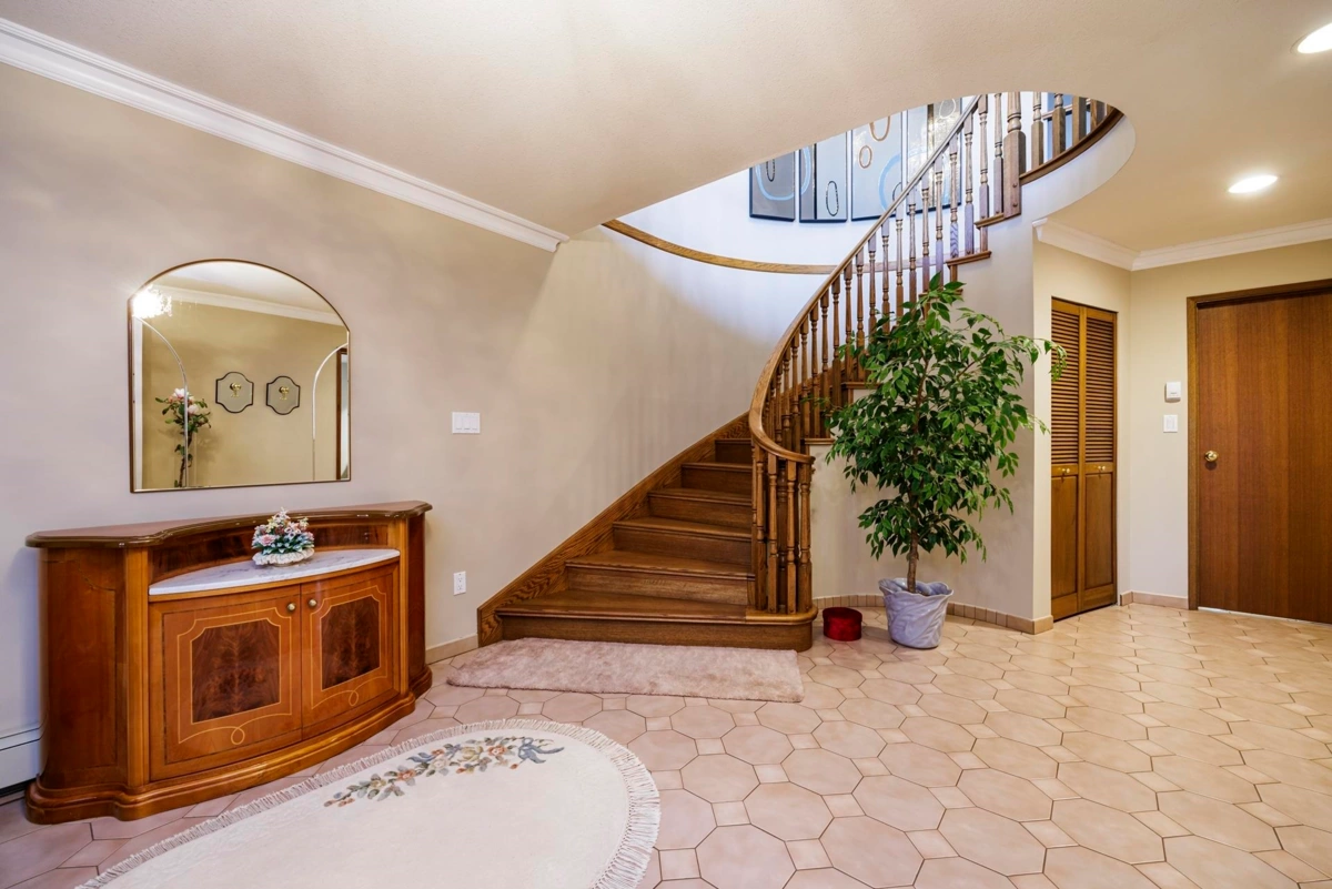 Impeccable, rarely available custom one-owner home ideally set on a coveted street. A grand foyer and sweeping circular staircase welcomes you and leads up to a main living area. Spacious rooms here include a light-filled oak kitchen with stainless appliances, cozy eating area & adjoining family room. The formal living/dining spaces, enhanced by rich HW floors & abundant natural light, create a warm inviting atmosphere perfect for both relaxed family living & elegant entertaining. Upstairs also has 3 good-sized bedrooms and 2 beautifully appointed baths. At ground level, you'll find 2 more bedrooms, a large games room, mudroom, bath, 2nd kitchen & a bright family room - excellent potential for 1 bed suite conversion! Double garage and lane access too!