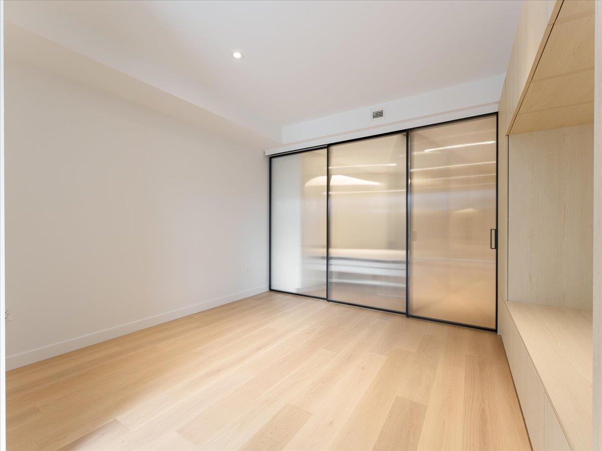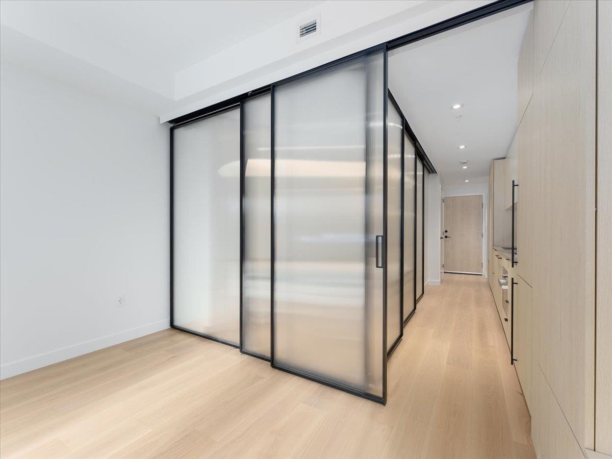 Brand-new top-floor south-facing condo at The Saint George by Reliance Properties-a boutique building that blends modern architecture with outstanding livability. Featuring over-height ceilings, oak millwork, wide-plank hardwood floors, terrazzo stone countertops, Bosch and Fulgor Milano appliances with gas range, AC, and generous balcony. Flexible floorplan with combo murphy bed/dining table, oversized sliding doors lets you enjoy open-concept living or a private one-bedroom layout with 2 bathrooms! Amenities include a rooftop deck with pizza oven, garden boxes, and 360 degree panoramic views, top-floor lounge w/terrace, bike rooms, visitor parking, and storage locker. Prime location steps to restaurants, cafes, breweries, Emily Carr University, Kingsgate Mall, and the future Skytrain!