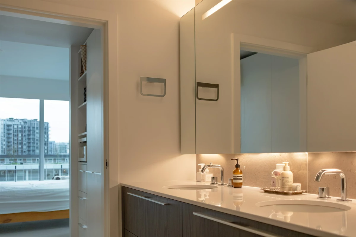 Experience the gold standard of waterfront living at 2 River Green by ASPAC, a residence defined by world-class craftsmanship and unrivaled quality. This stunning Southwest corner unit boasts soaring 9'4" ceilings and floor-to-ceiling windows that flood the home with natural light while framing serene sunset and garden views. The interior is a masterpiece of design, featuring a gourmet kitchen with top-tier Miele appliances, premium finishes, and integrated central heating and A/C for ultimate comfort. Residents enjoy exclusive access to 5-star resort amenities, including a 24-hour concierge, indoor pool, and fitness center, all perfectly located steps from the Olympic Oval, T&T, and the scenic river dyke.