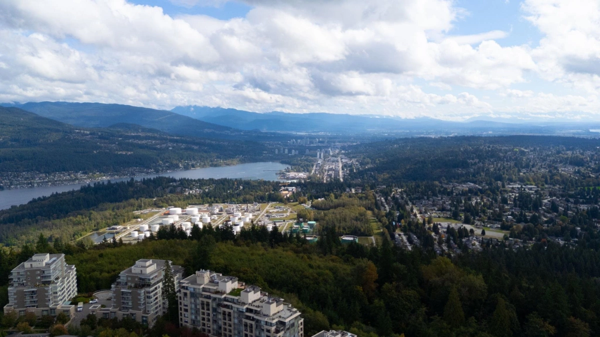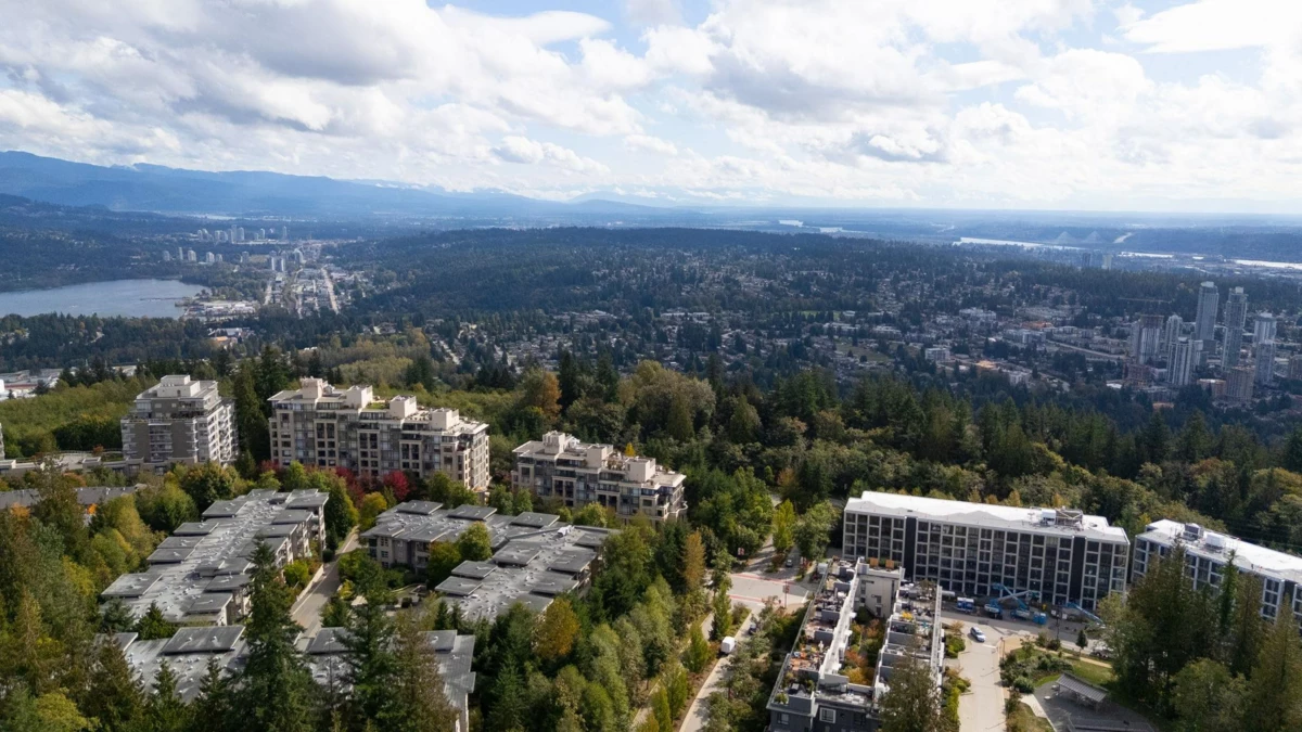 SFU Living! North east facing 841 Sq ft 2 Bed/2 Bath CORNER suite with MOUNTAIN VIEWS! Stainless steel appliances & laminate floors. Radiant in floor heating included in your strata fee! 1 parking & storage. Steps to Nesters Market, Starbucks, BC Liquor Store, A&W, Chopped Leaf and so many more trendy restaurants & shops. Right in the heart of Burnaby finest parks and trails; Barnet Park, Burnaby Mountain/Trans Canada/Velodrome Trails, Mountain Air Bike Skills Park & Bby Mtn Golf Course/Driving Range. Close to SFU Childcare Society, an amazing daycare for families with little ones, great for investors for rental potential and perfect for students or professors attending SFU. School catchments are University Highlands Elementary (K-7) & Bby Mountain Secondary (8-12).