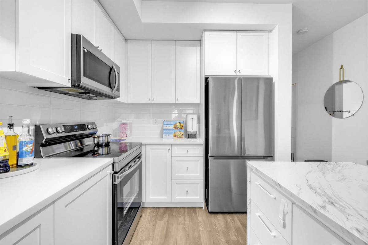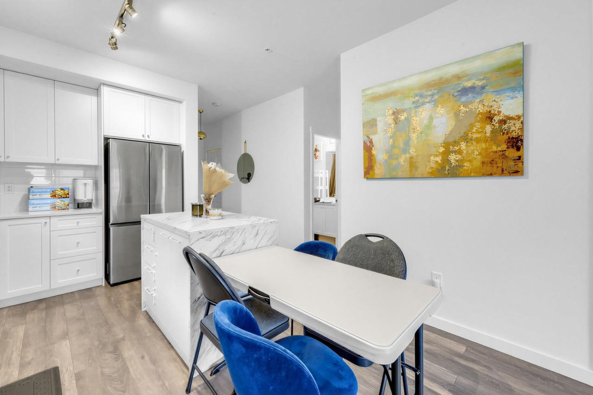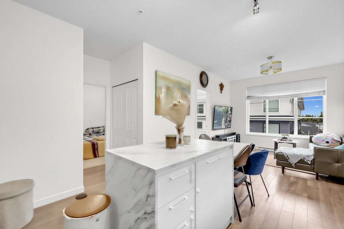 Welcome home! This bright, top-floor home offers a smart, open layout with large windows that bring in plenty of natural light. The modern kitchen flows seamlessly into the living space, making it perfect for everyday living or hosting friends. Step out onto your private balcony to relax after a long day. Located close to transit, shopping, restaurants, and essential amenities, this is a great place to call home for first-time buyers or those looking to downsize comfortably. Be along the newest skytrain line connecting Surrey to Langley! Open House SAT Jan 24th and SUN 25th 2-4 PM!