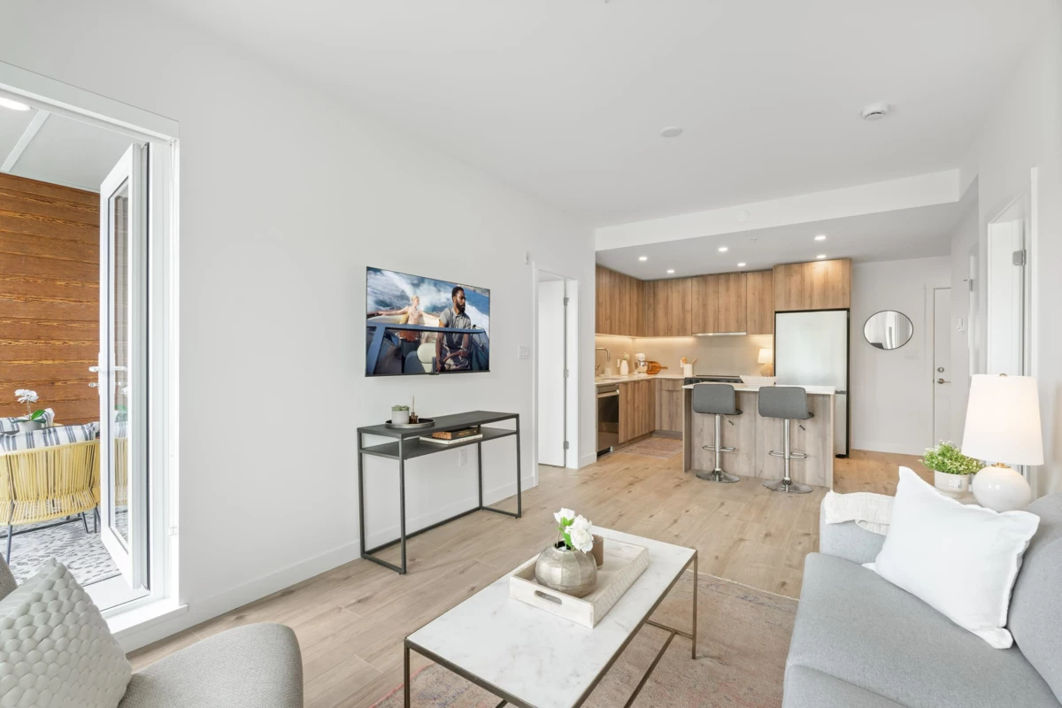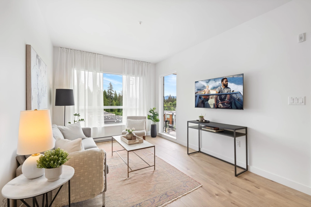 Welcome to Lupine Walk—BRAND NEW-an exceptional new 2-bedroom, 2-bath home in Seymour Village. This east-facing unit offers a quiet, serene outlook and a bright open-concept layout with 9-foot ceilings, quartz countertops, stainless steel appliances, and LED lighting. Enjoy in-suite laundry,1 secure parking with EV charging, 2 storage lockers, and a spacious balcony perfect for morning sun. Ideally located near Parkgate Village, Cates Park, schools, and forested trails. Building amenities include a stunning fitness centre, kids’ playroom, social lounge, BBQ area, bike and pet wash stations, and more. GST included.
