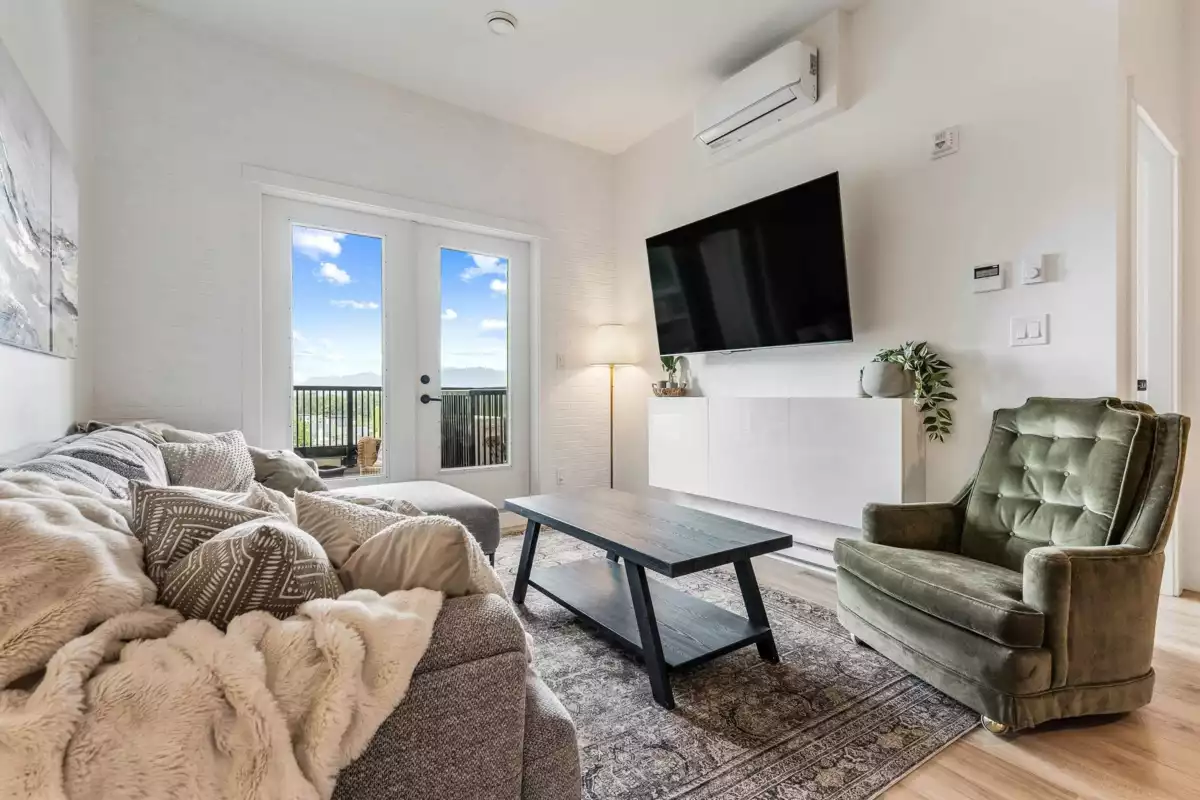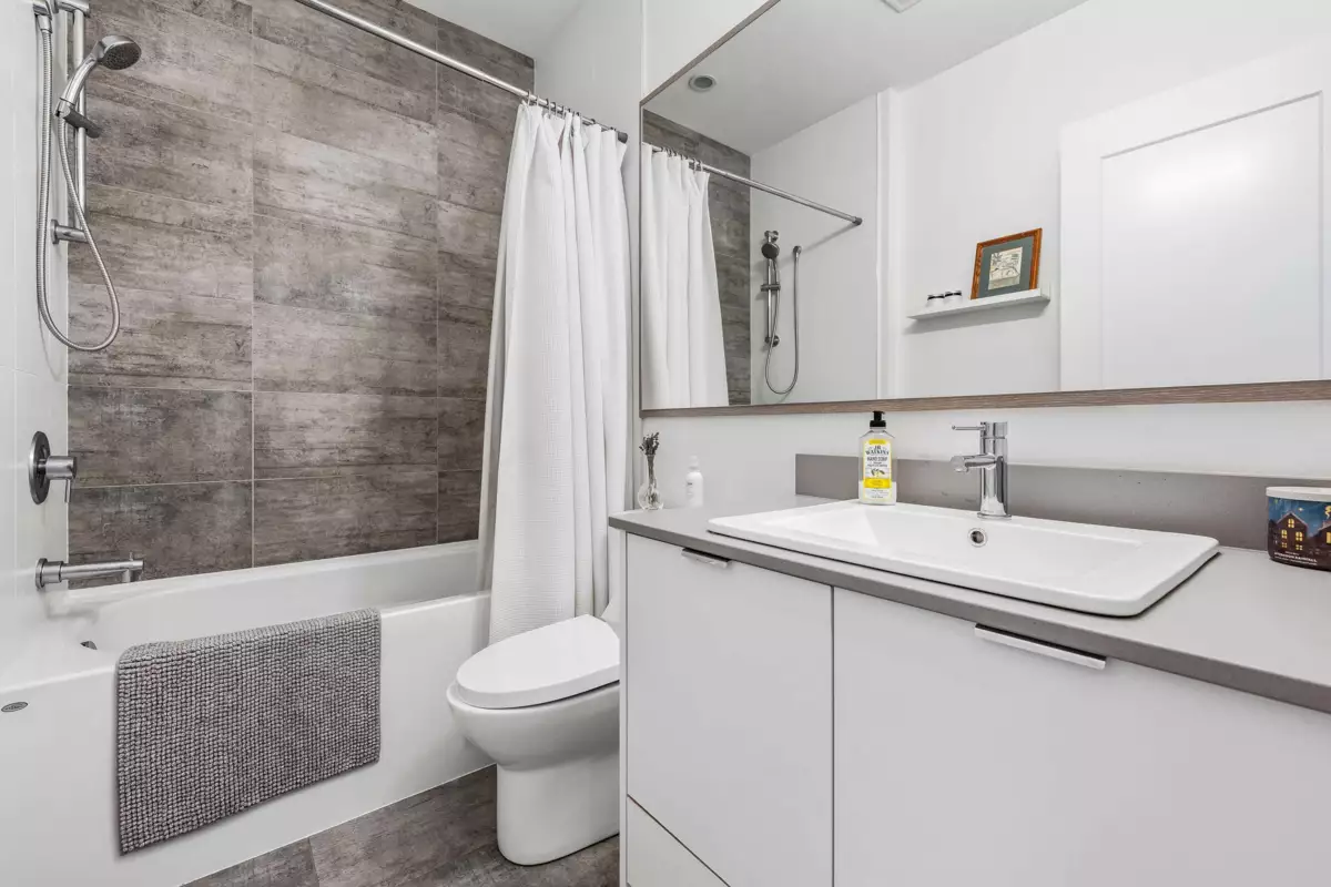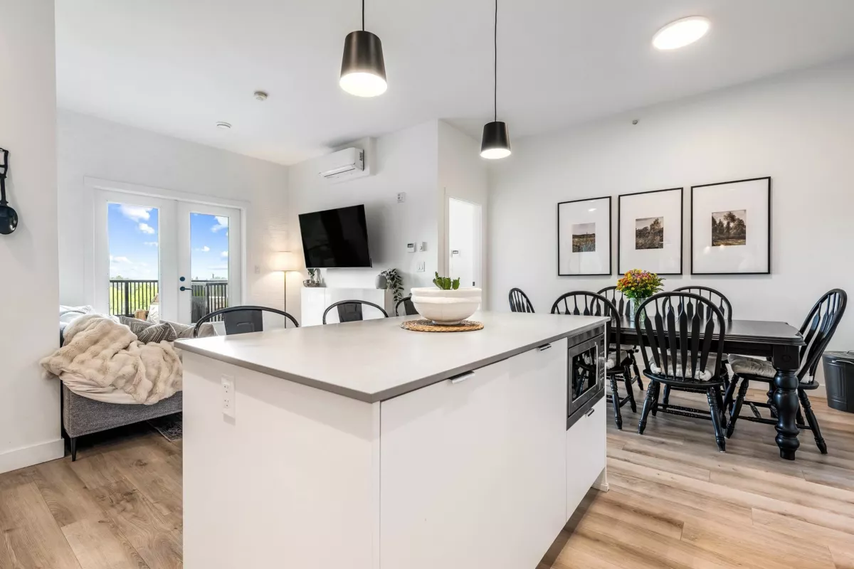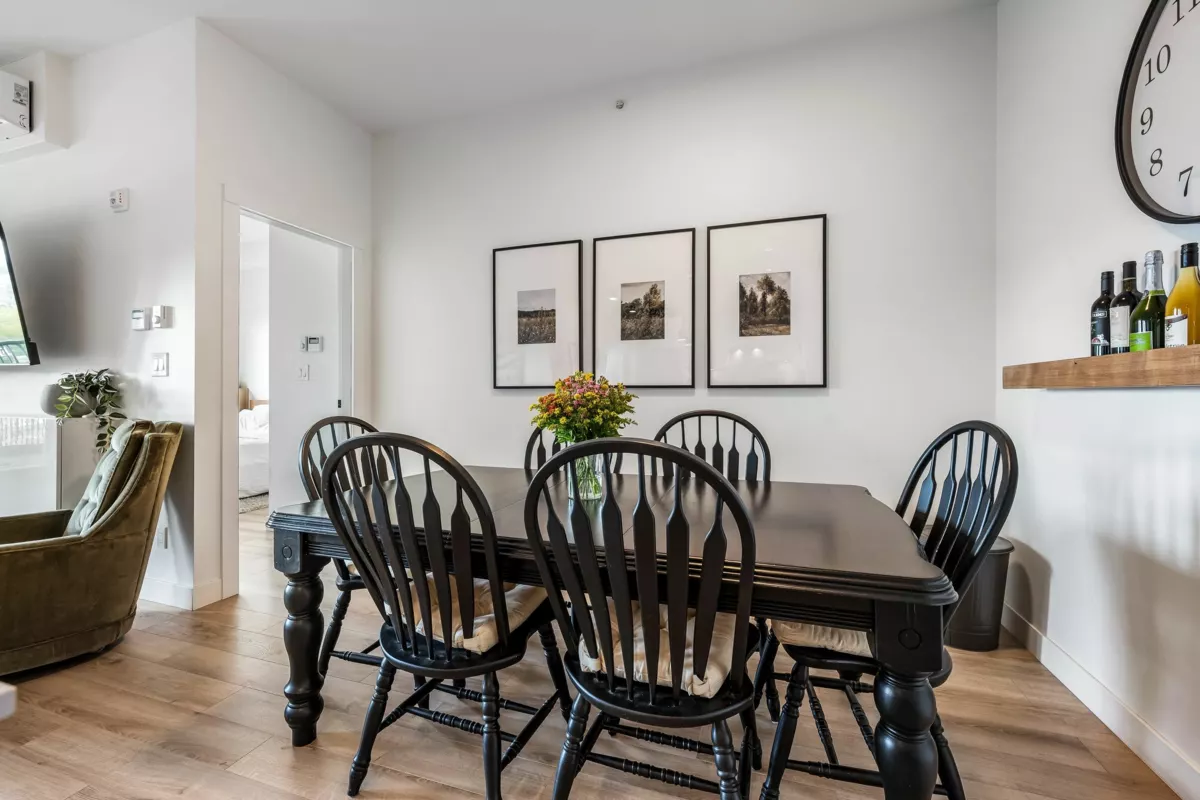 Welcome to Upper Montrose in the heart of downtown Abbotsford! This top-floor 3 bed + den, 2 bath home offers 1,225 sqft of open-concept living with stunning northern views. Features include A/C in the living room and primary bedroom, a gourmet kitchen with quartz counters, stainless appliances, large island, and gas BBQ hookup on the patio. The spacious primary suite boasts walk-through closets and a double-sink ensuite. The versatile den is perfect for a nursery, office, or extra storage. Enjoy 2 parking stalls, family-friendly amenities, and proximity to schools, shops, cafes, gyms, Old Yale Brewing, and the new transit loop.
